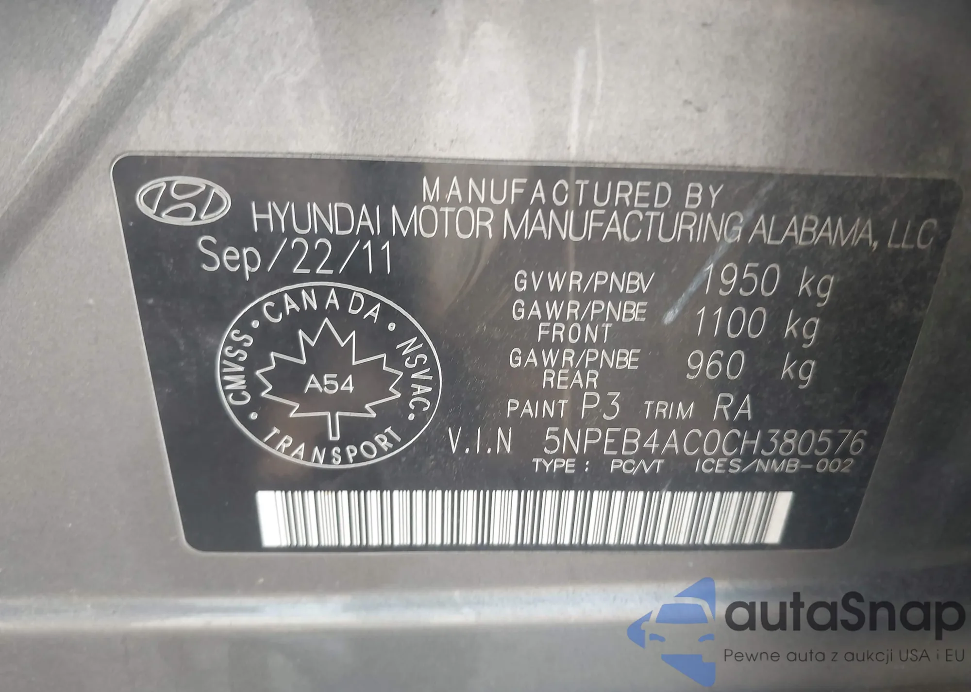 • VIN 5NPEB4AC0CH380576