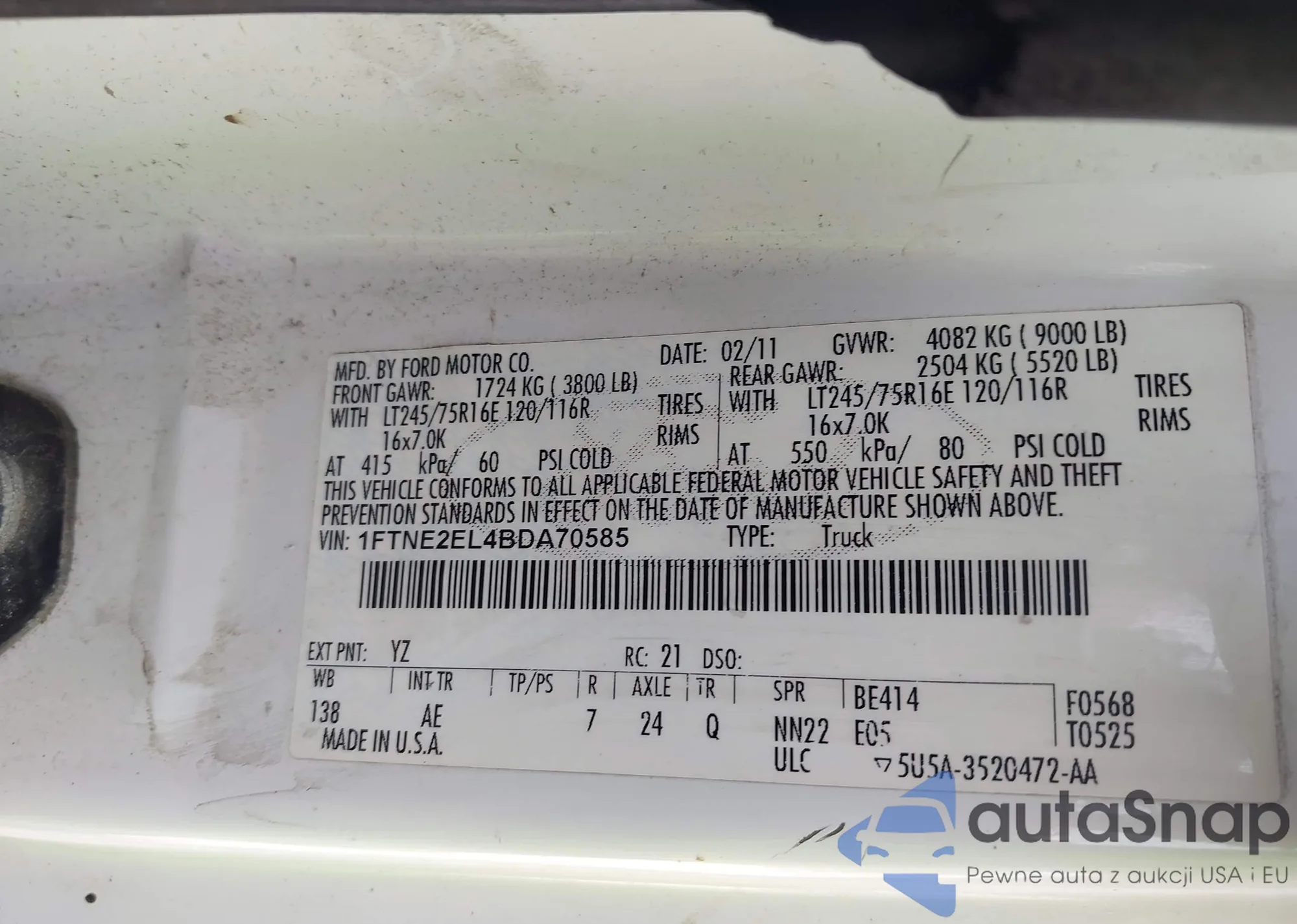 • VIN 1FMCU9HX8DUB44607
