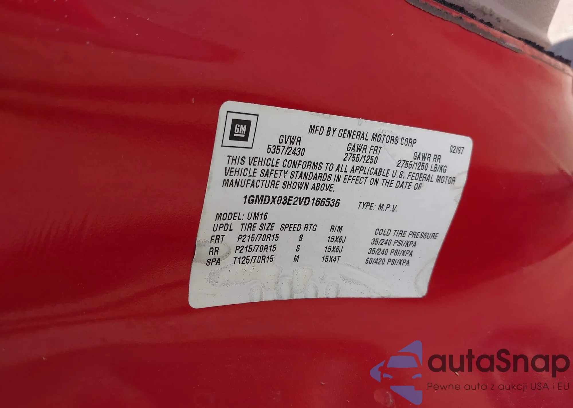 LOT: 42997067 VIN: 1GMDX03E2VD166536