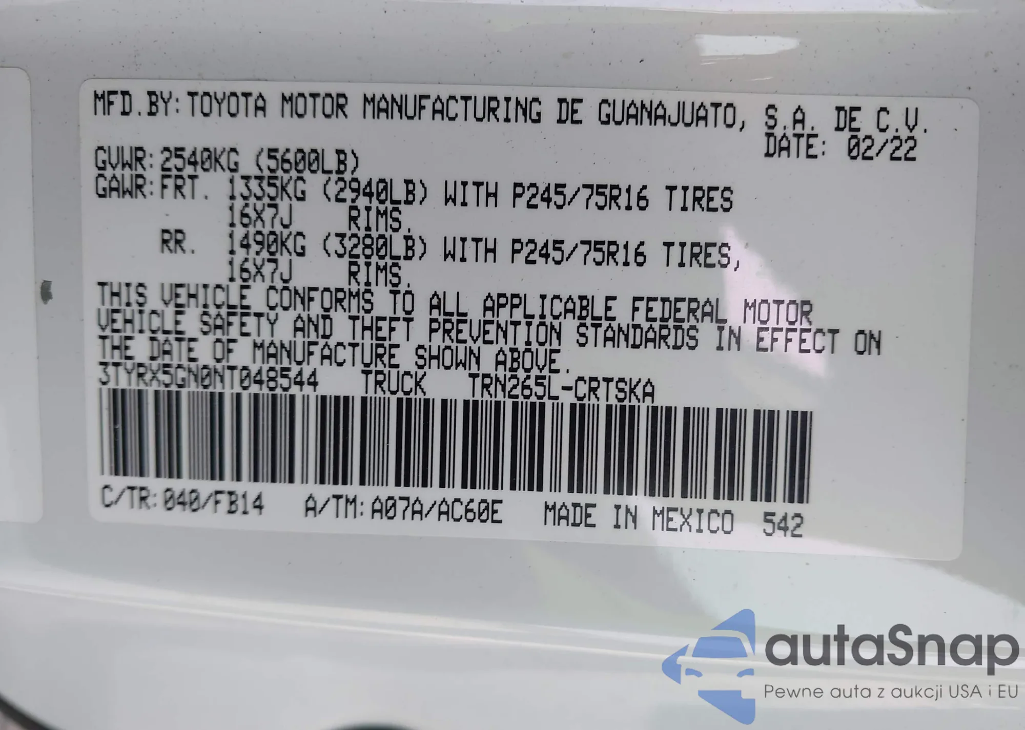 LOT: 42902602 VIN: 3C6TRVBG2GE105562