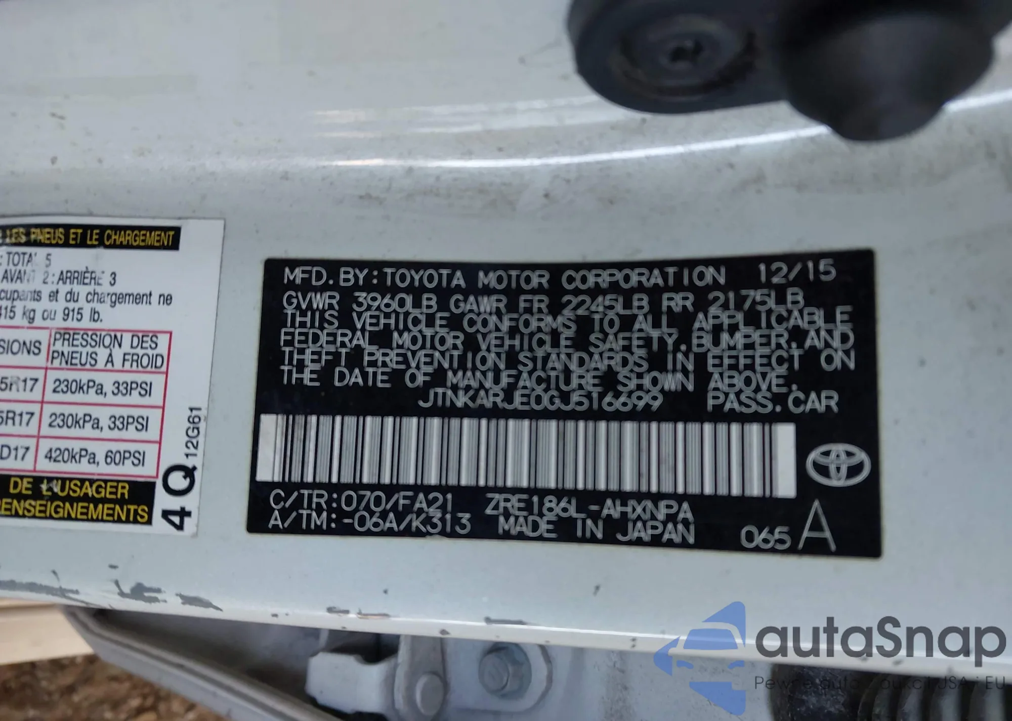 LOT: 42792126 VIN: JTNKARJE0GJ516699
