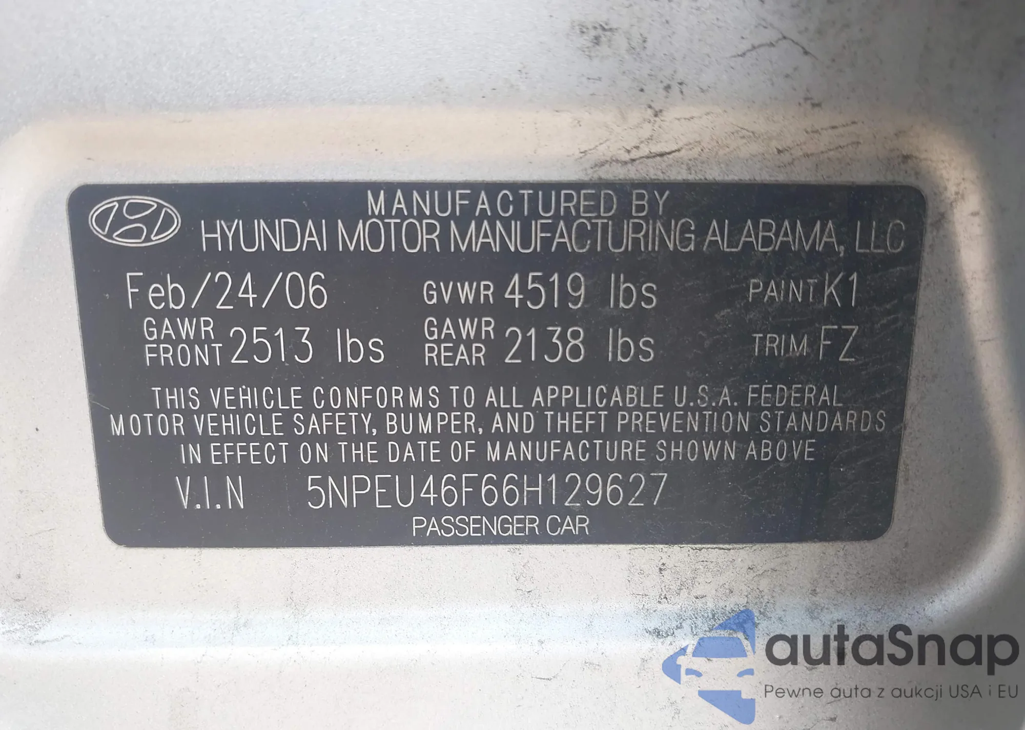 LOT: 42914454 VIN: 5NPEU46F66H129627