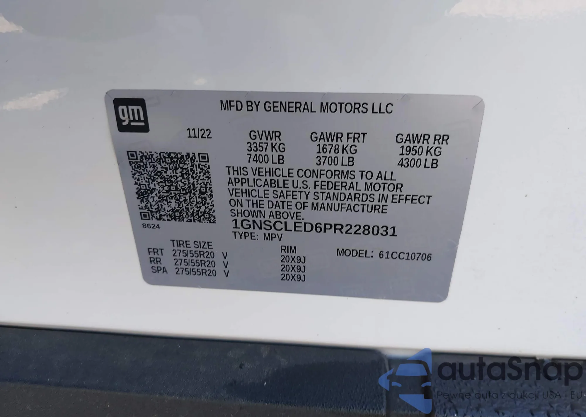 • VIN 1GNSCLED6PR228031