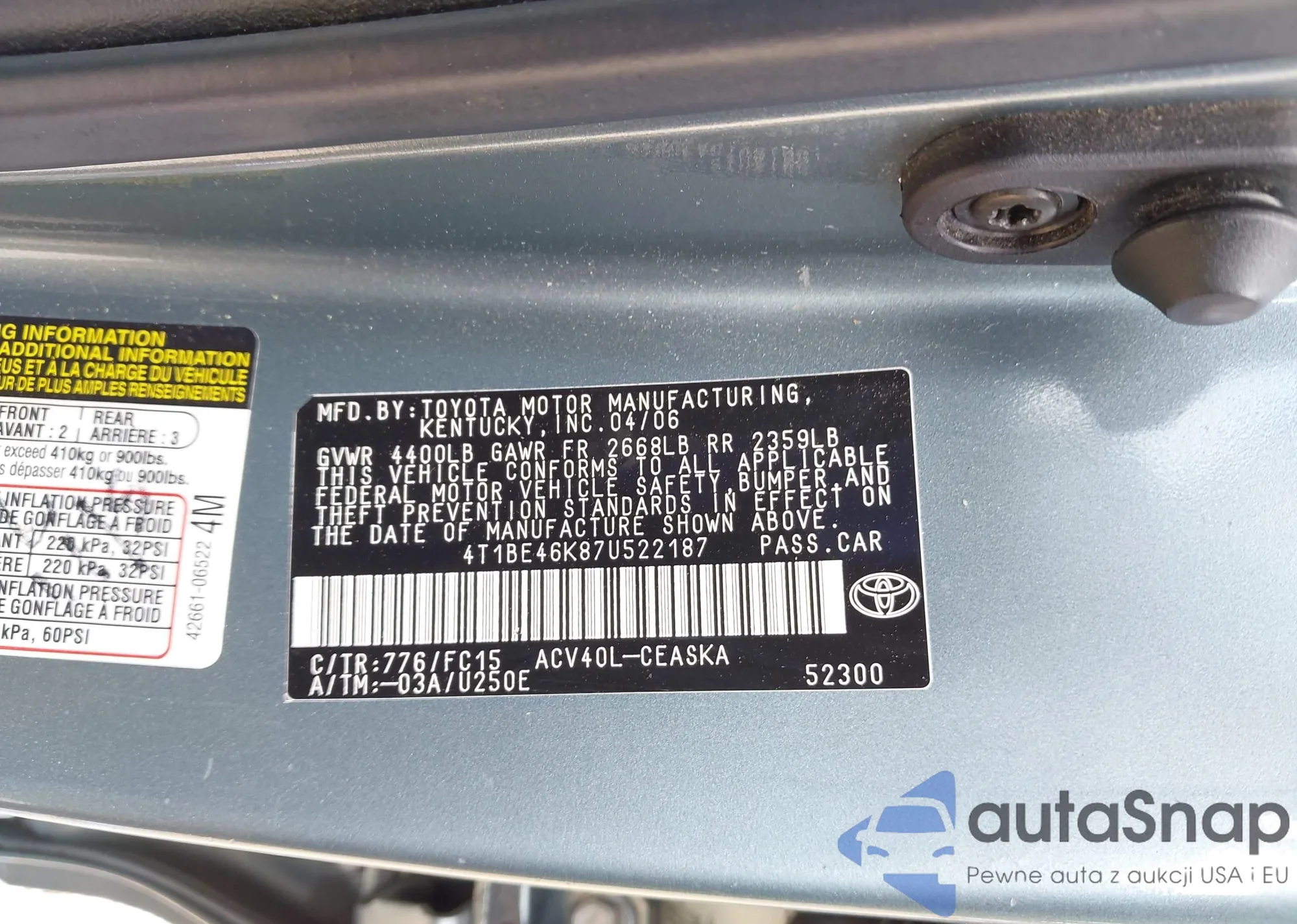 LOT: 42610960 VIN: 4T1BE46K87U522187