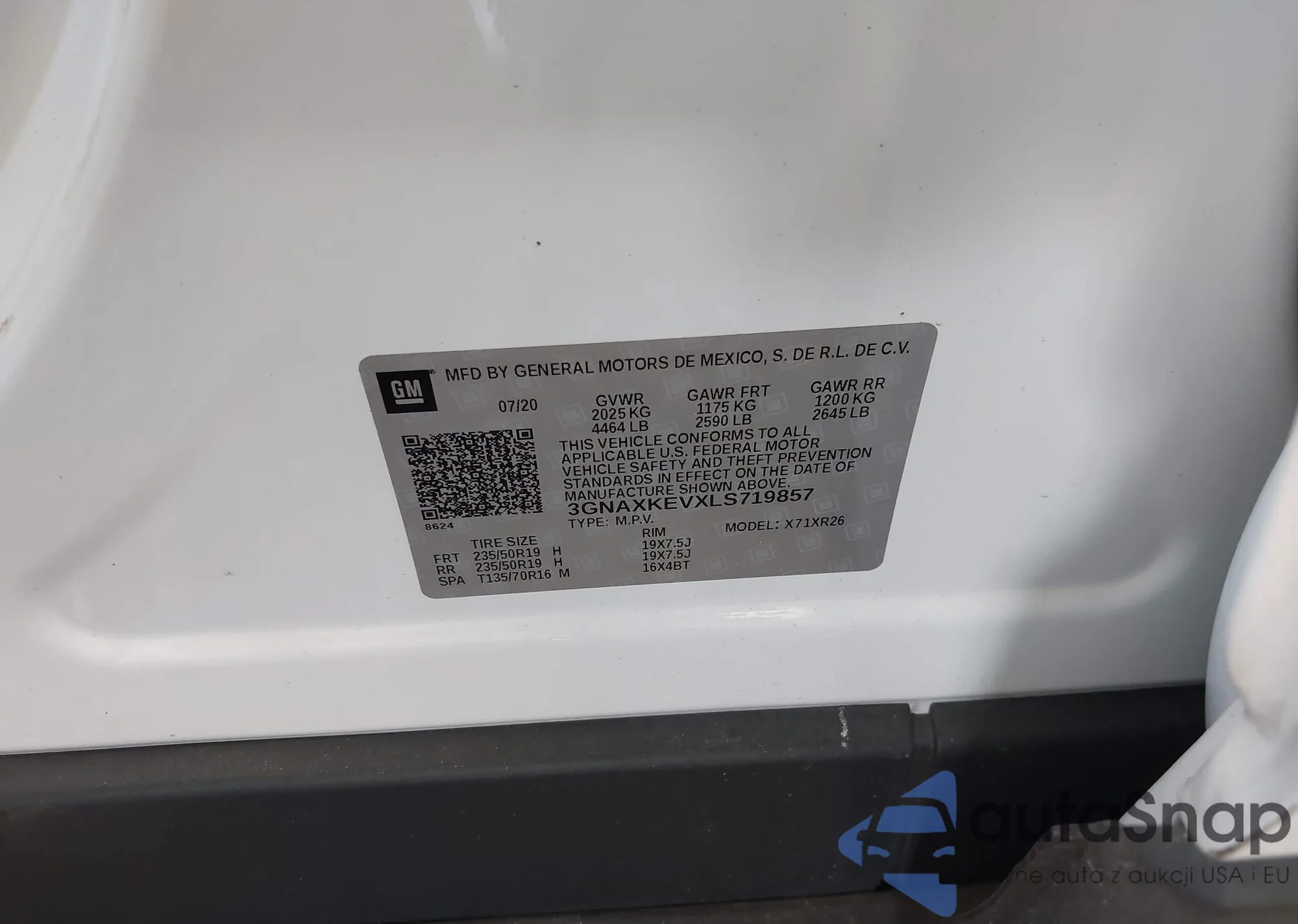 LOT: 42622344 VIN: 3GNAXKEVXLS719857