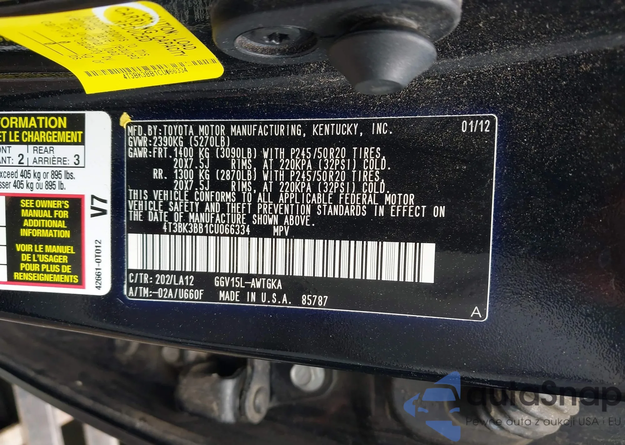 • VIN 4T3BK3BB1CU066334