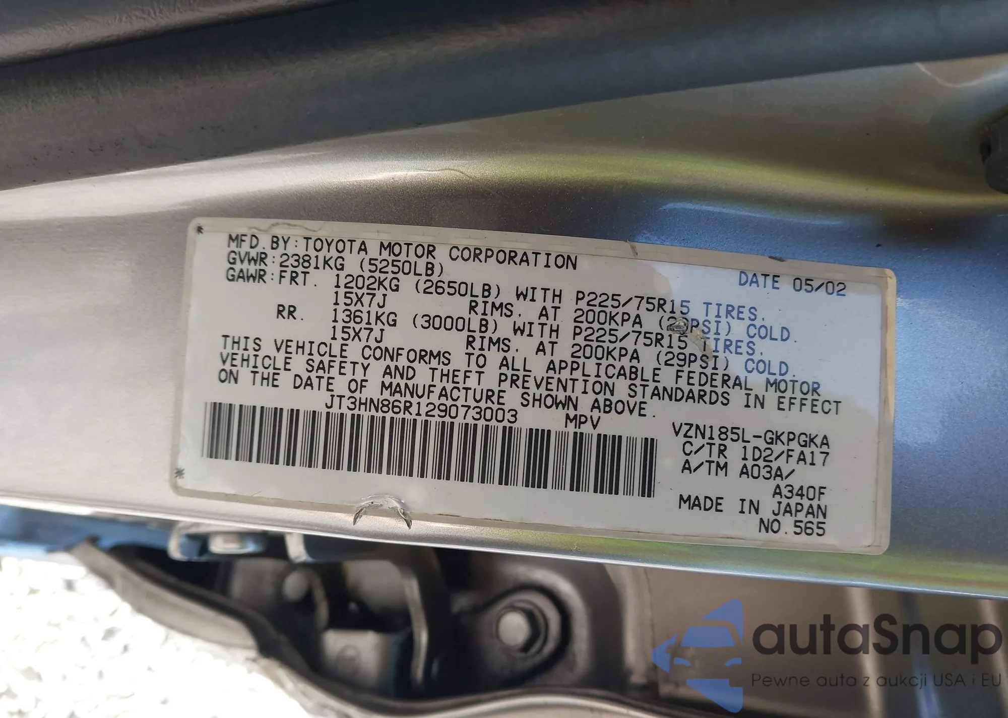 • VIN JT3HN86R129073003