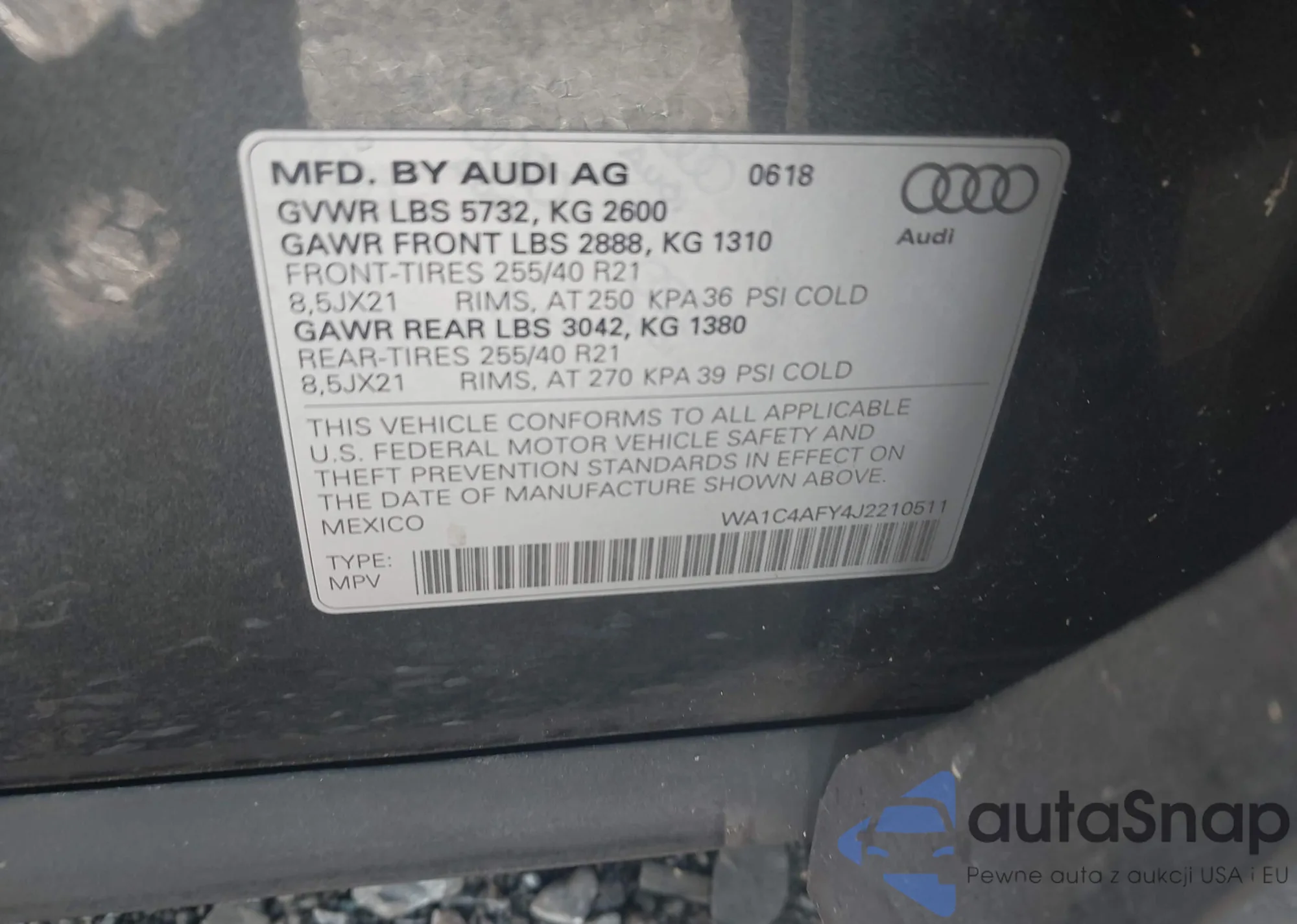 • VIN WA1C4AFY4J2210511