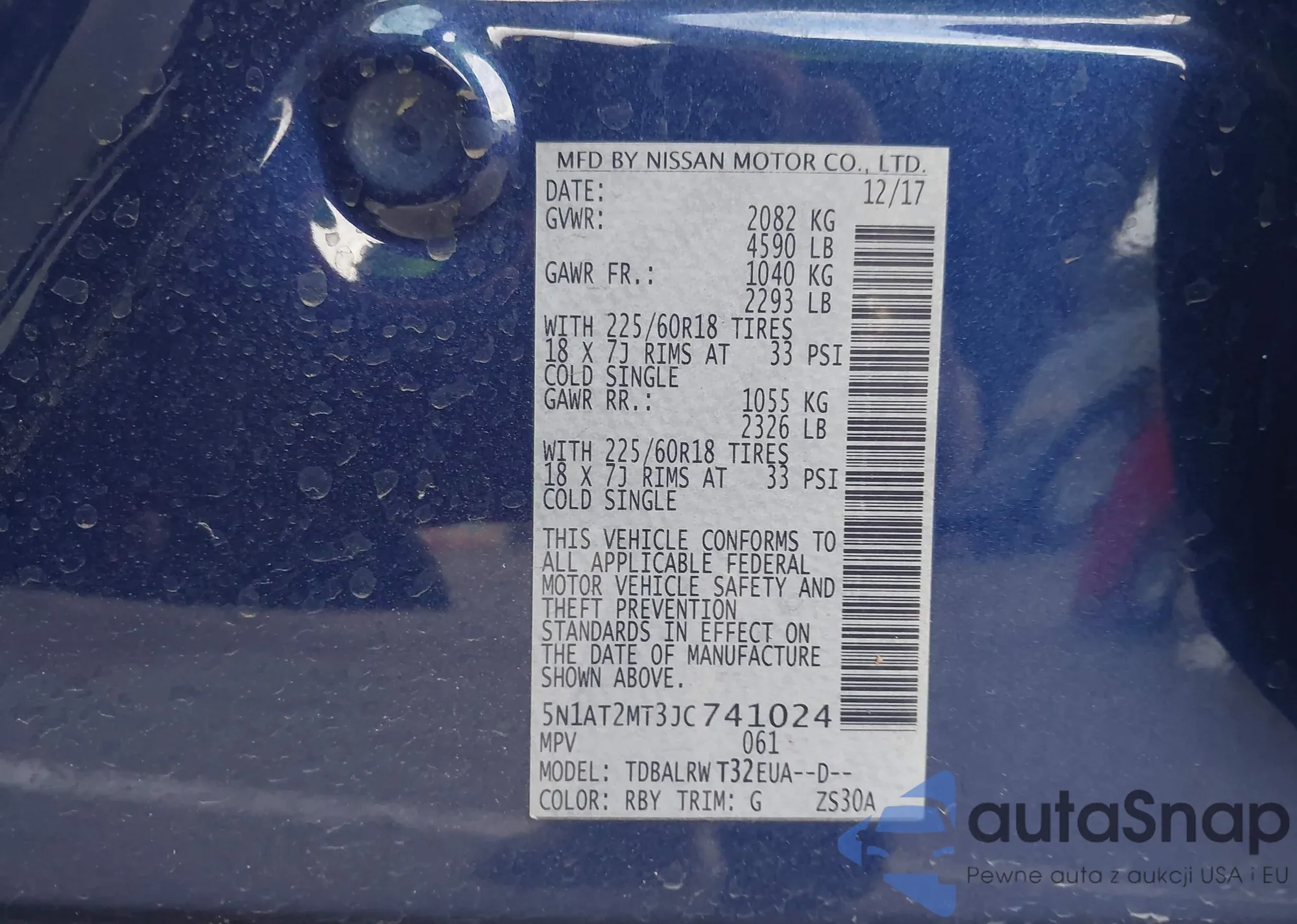 LOT: 43061206 VIN: 5N1AT2MT3JC741024