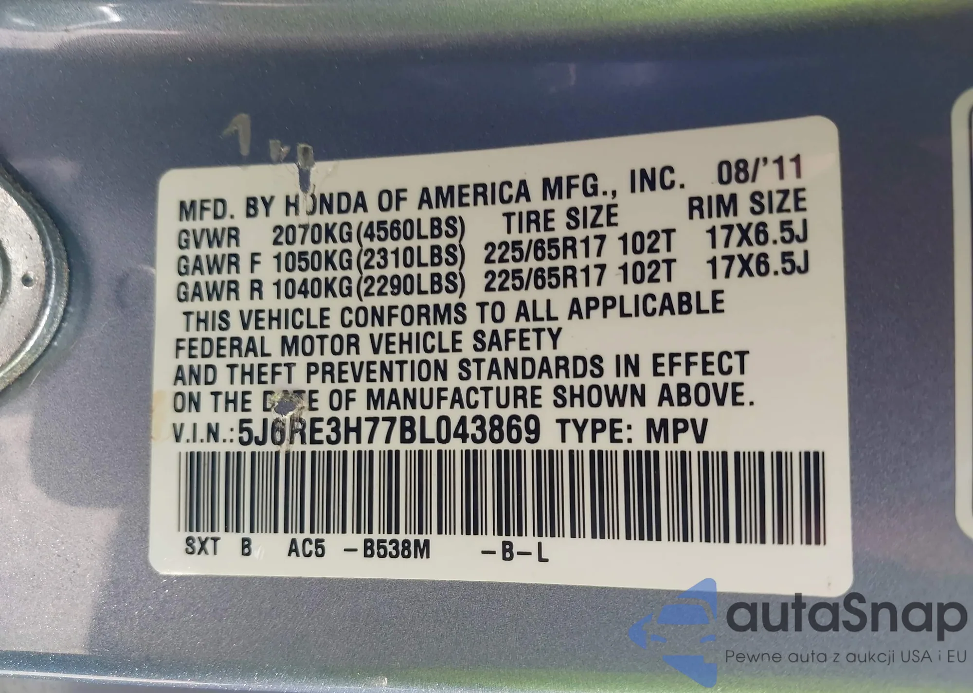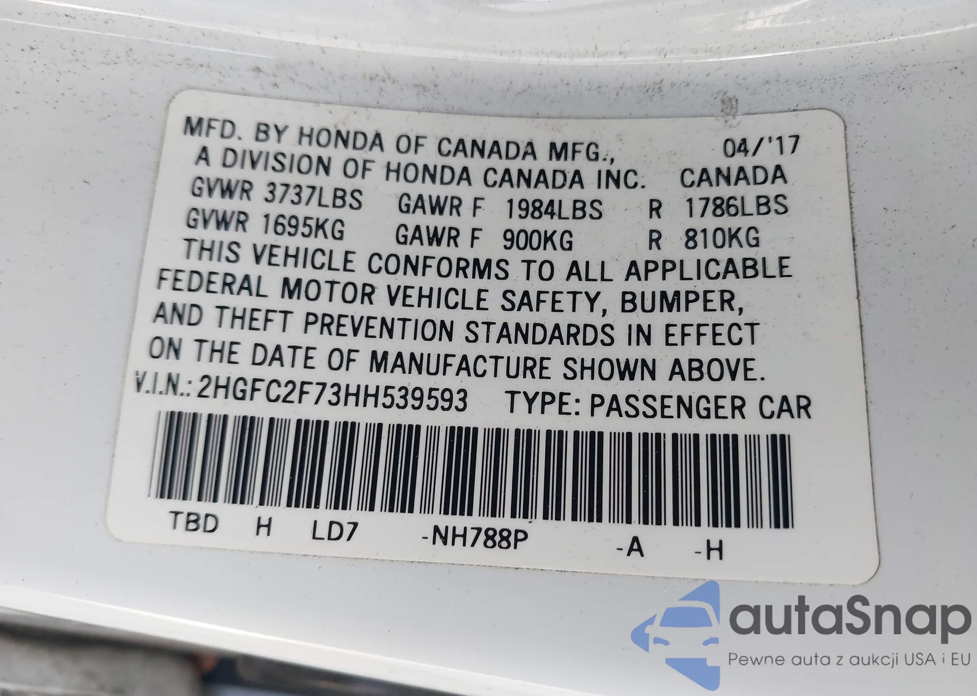 LOT: 42838174 VIN: JHLRD68474C007024