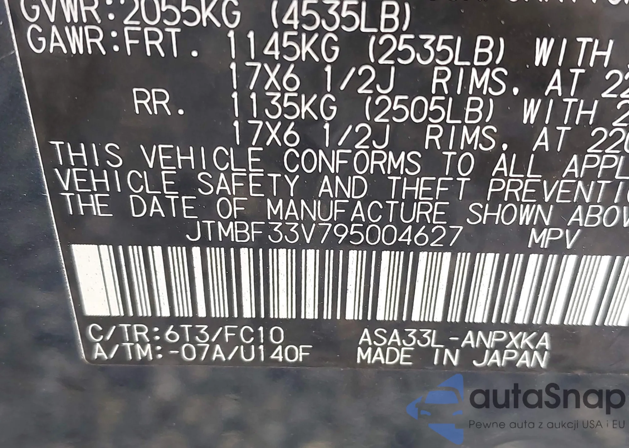 LOT: 42943306 VIN: JTDKT4K35A5313631
