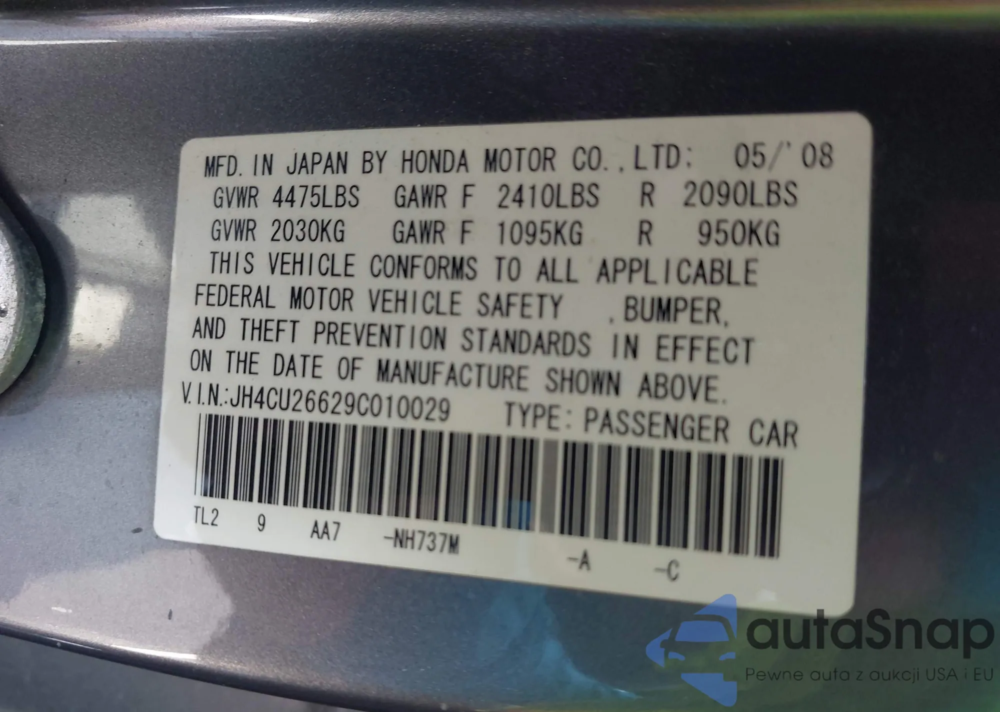 LOT: 42970578 VIN: JH4CU26629C010029