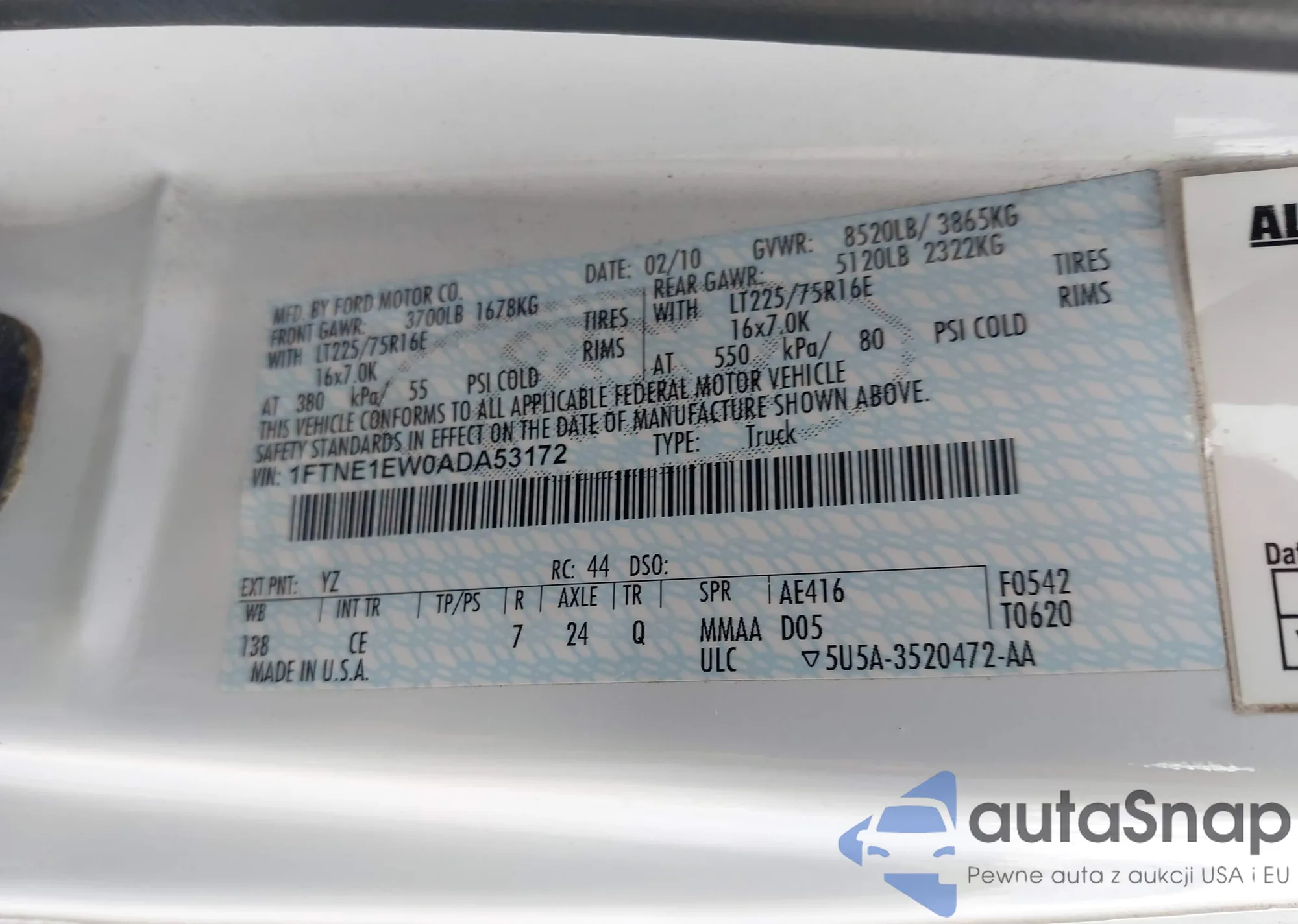 • VIN 1FTNE1EW0ADA53172