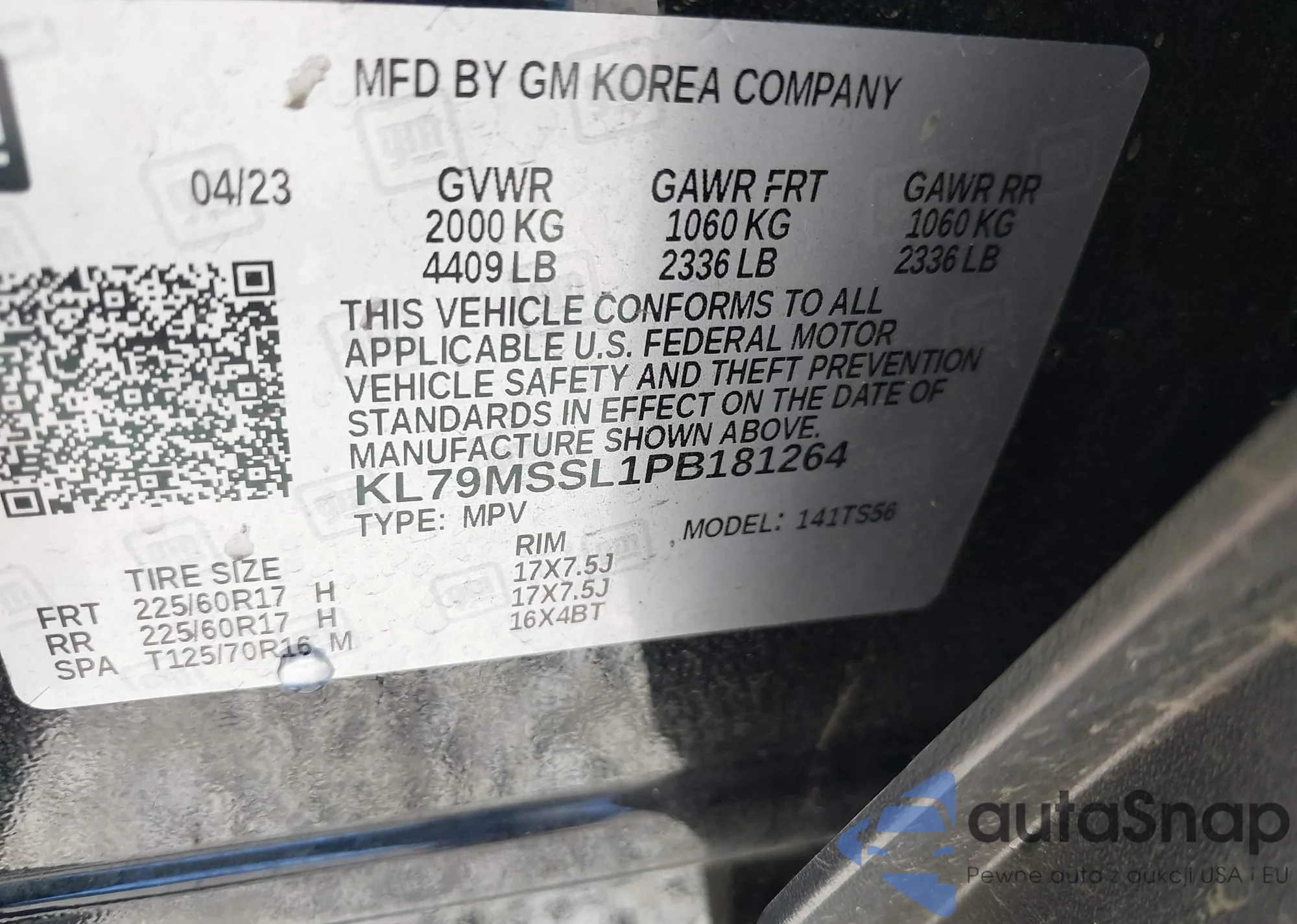 • VIN KL79MSSL1PB181264