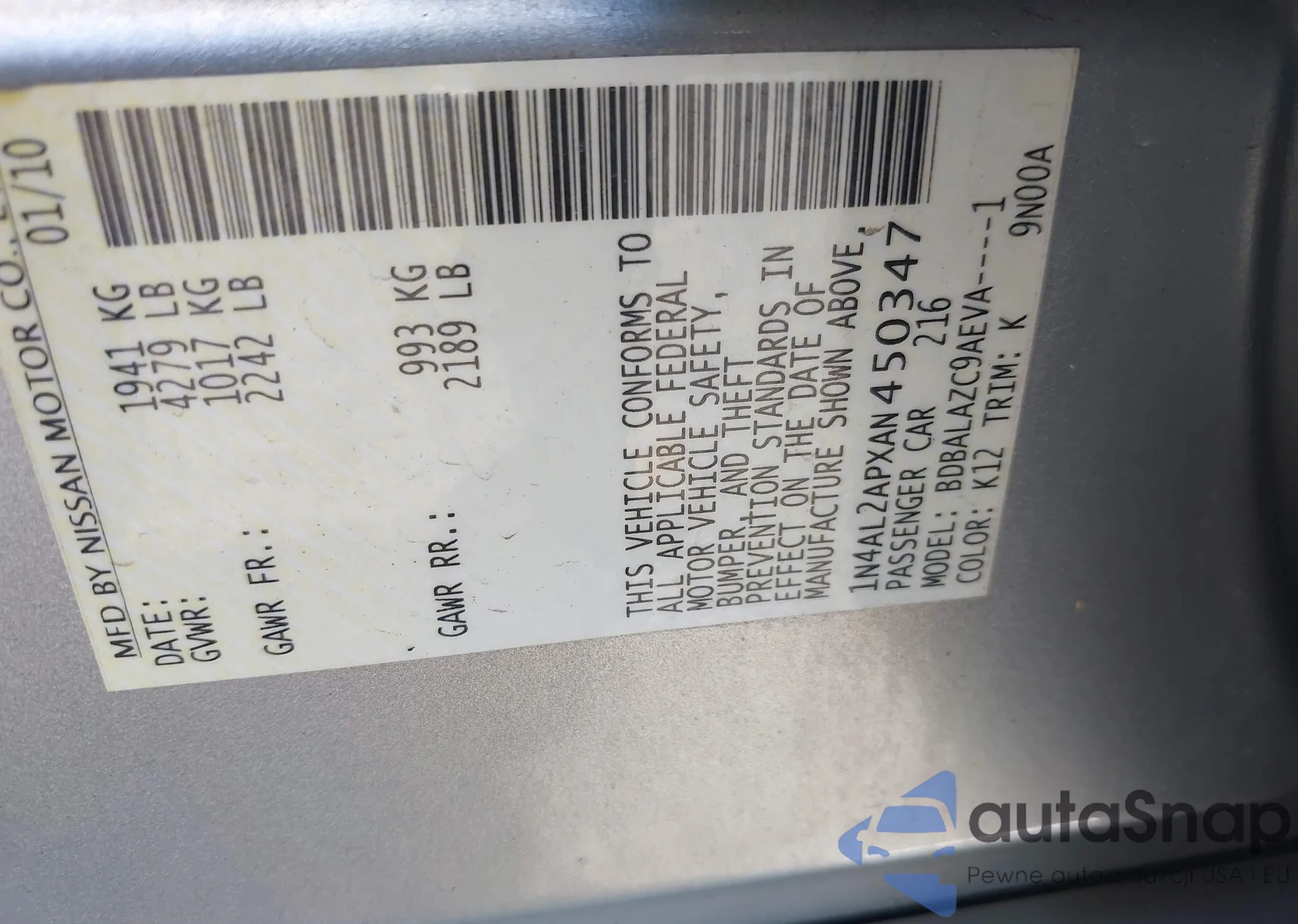 LOT: 42987904 VIN: KNAFU4A2XA5097702