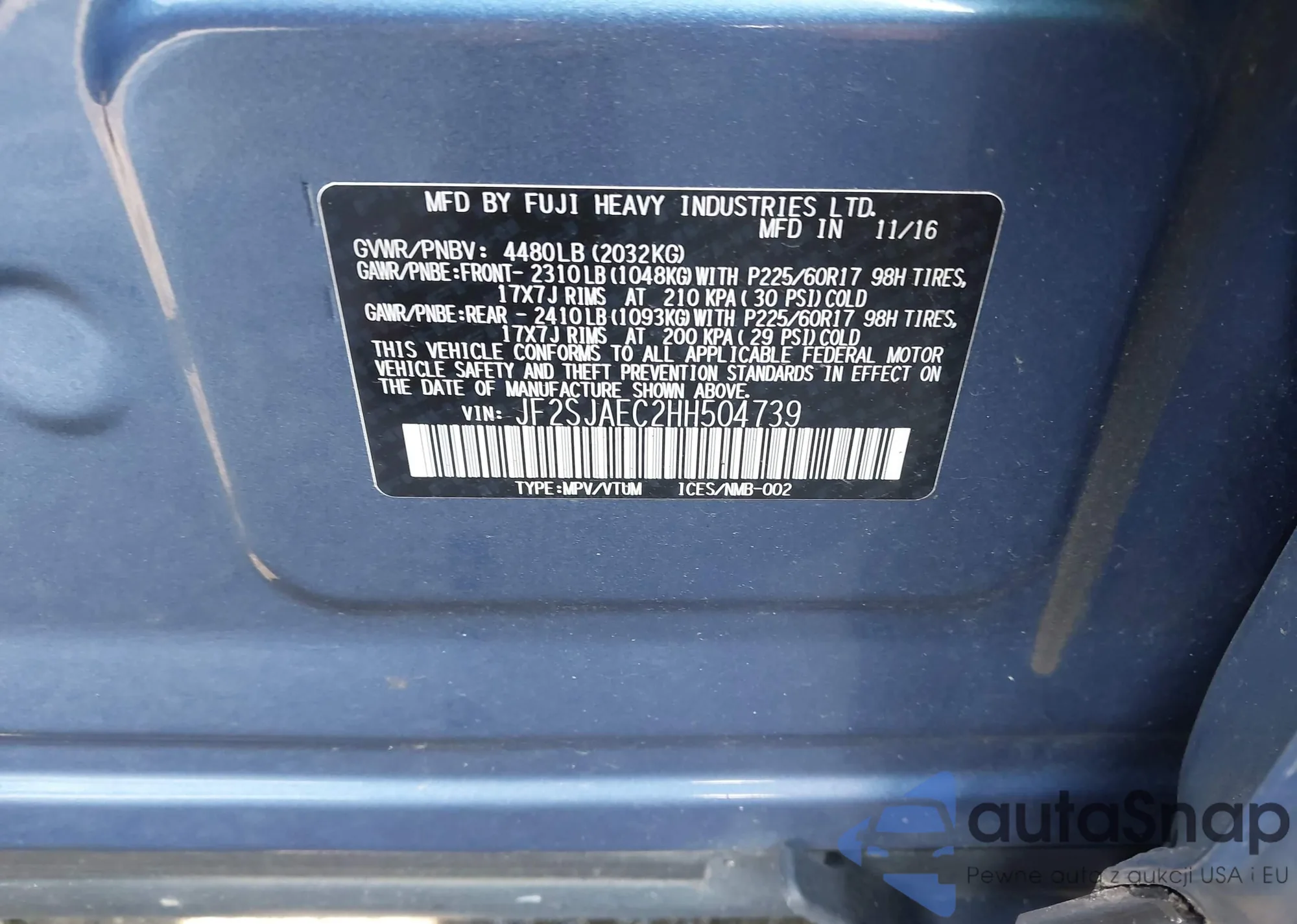• VIN JF2SJAEC2HH504739
