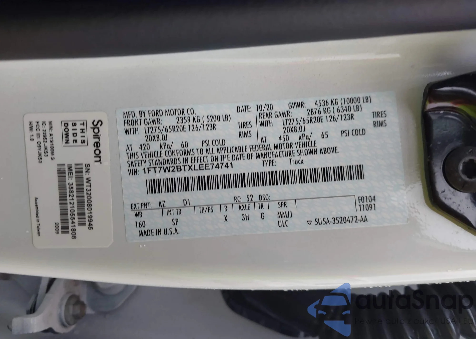LOT: 43031368 VIN: 1FT7W2BTXLEE74741