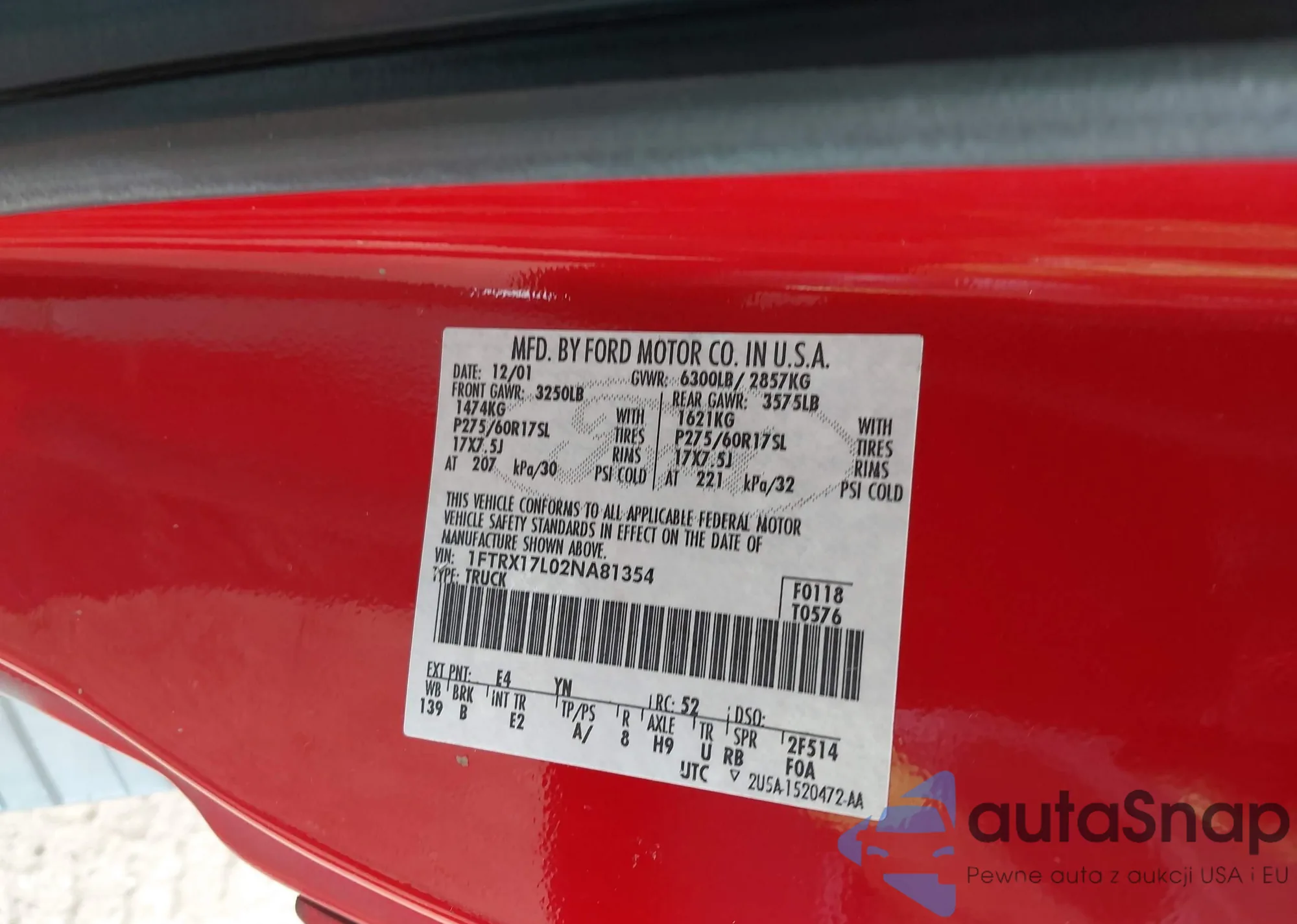 • VIN 1FTRX17L02NA81354