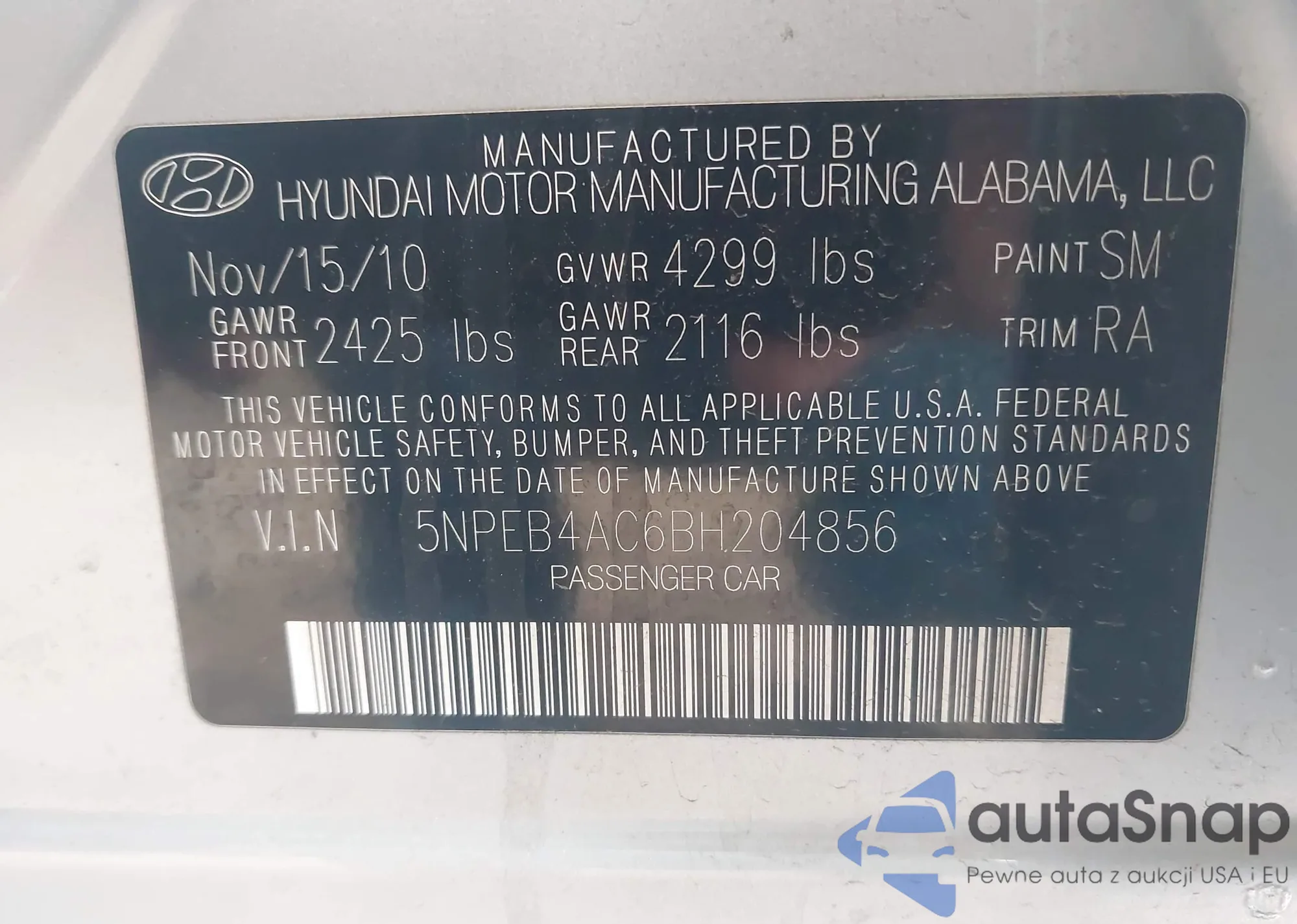 • VIN 5NPEB4AC6BH204856