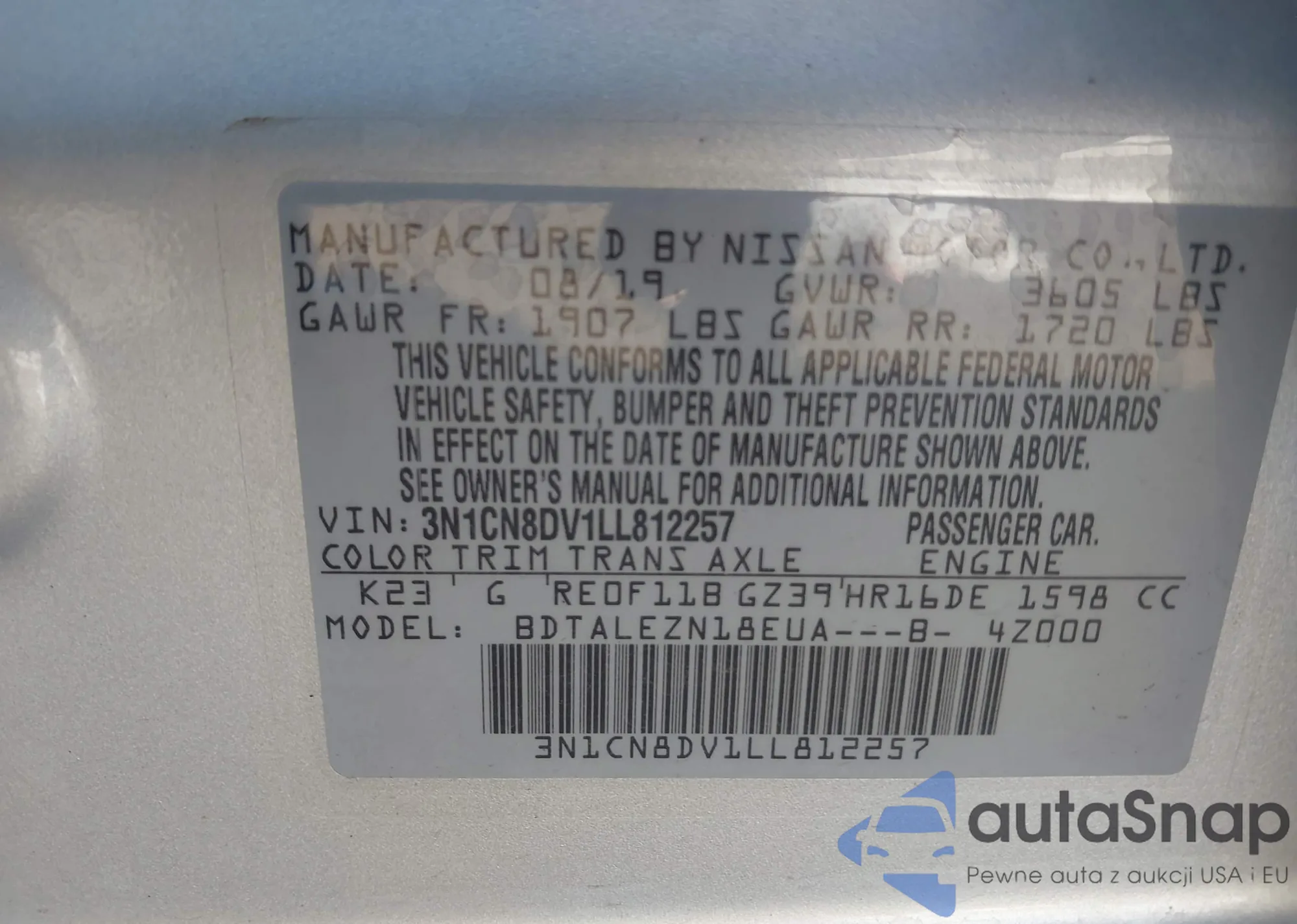 • VIN 3N1CN8DV1LL812257