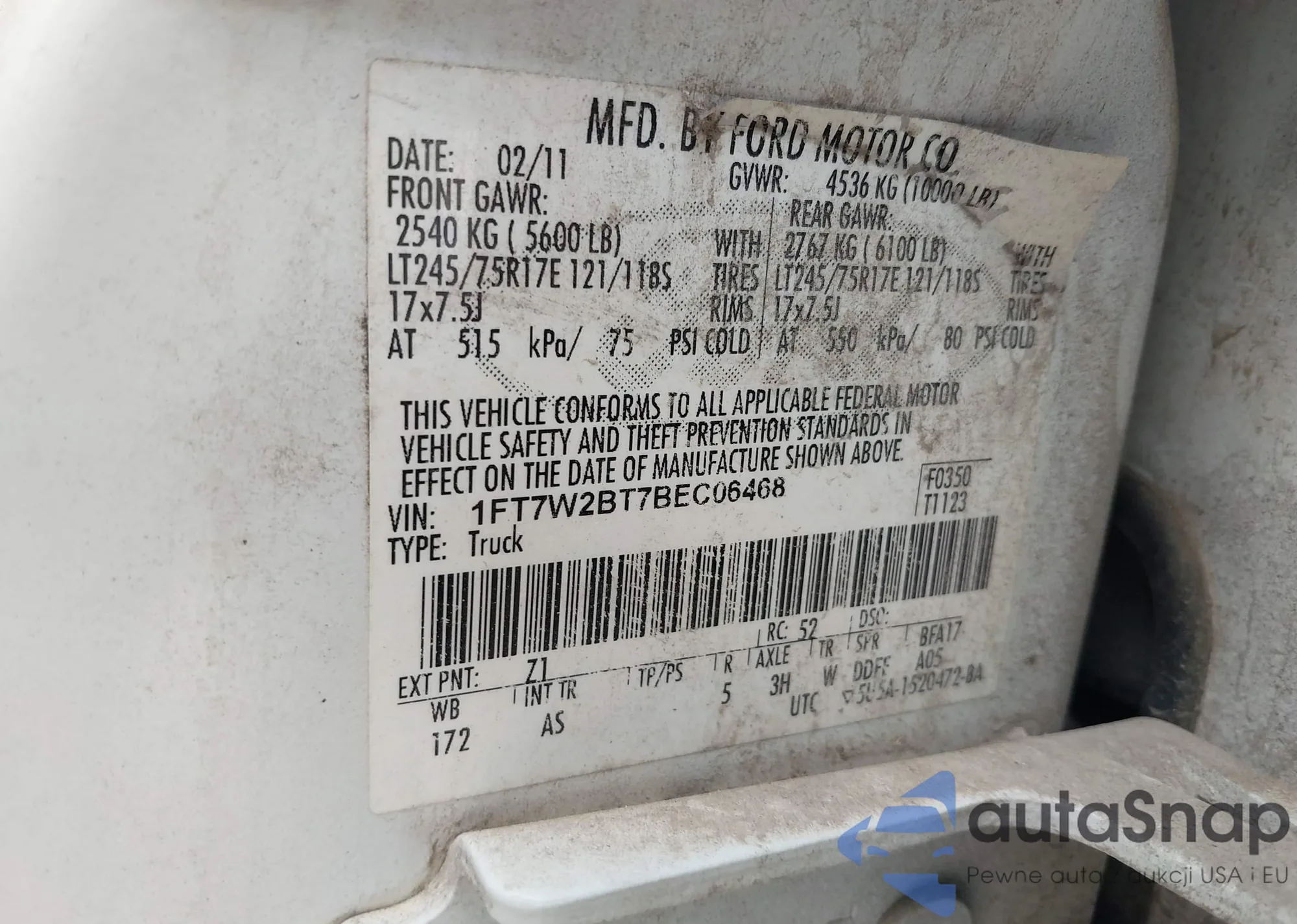• VIN 1FT7W2BT7BEC06468
