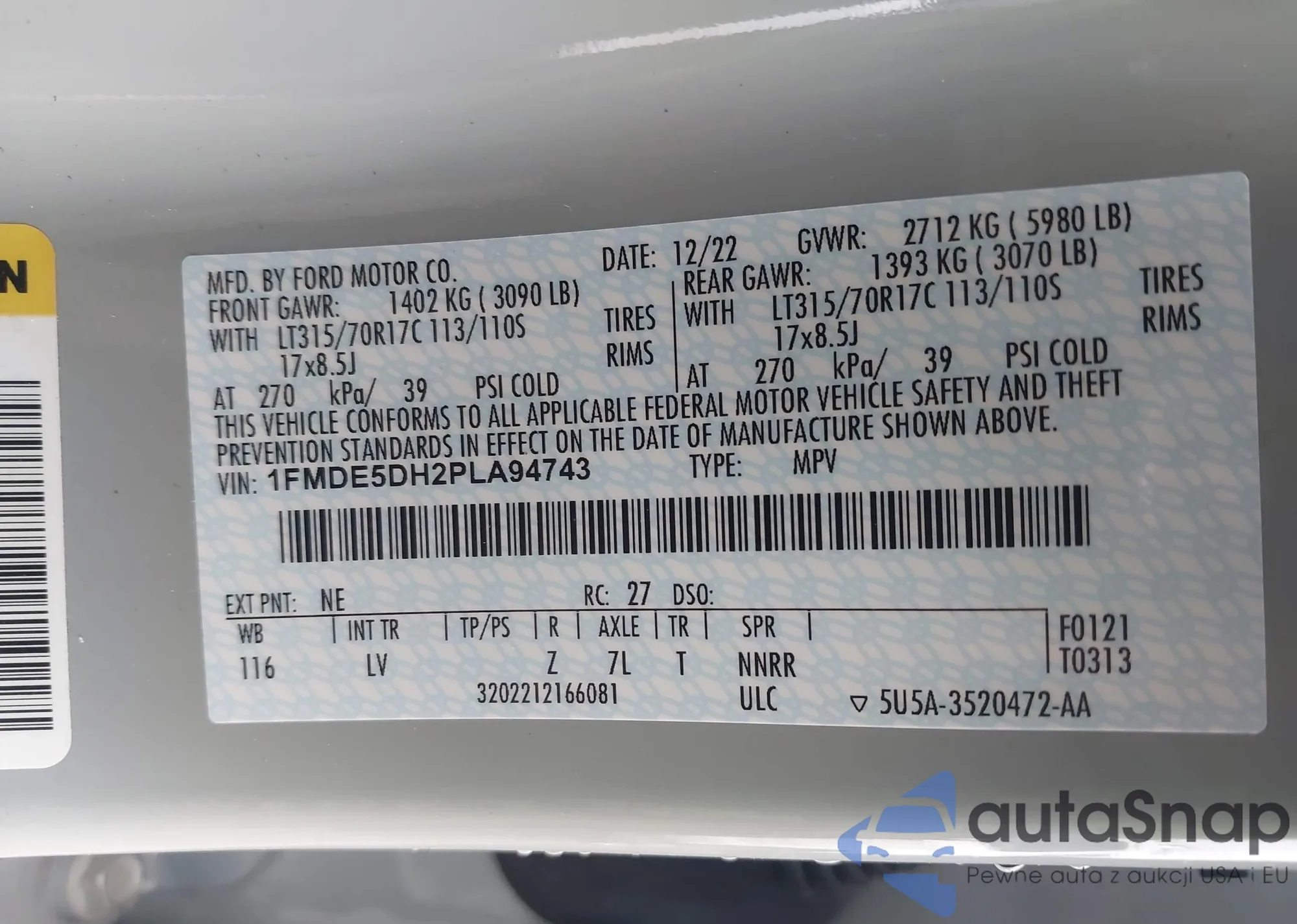 LOT: 43040436 VIN: 1FMDE5DH2PLA94743