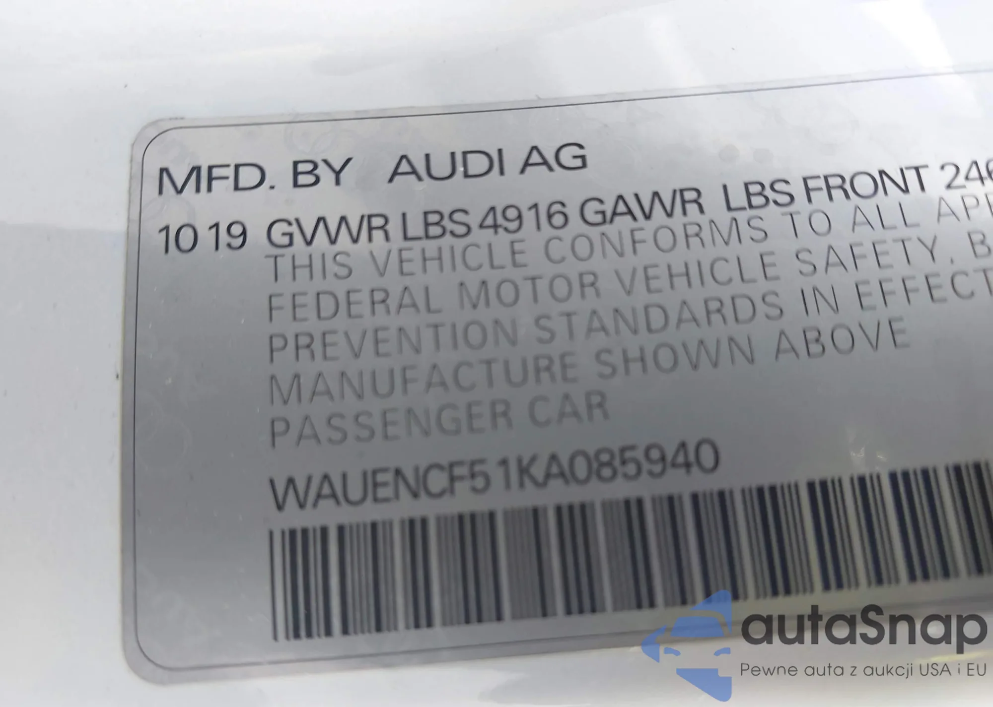• VIN WAUKGAFB4AN021700