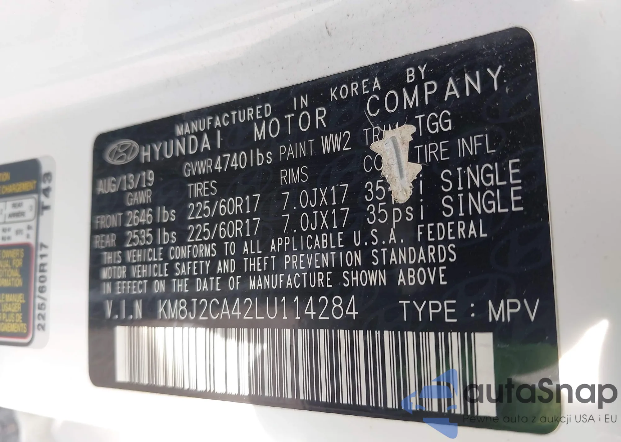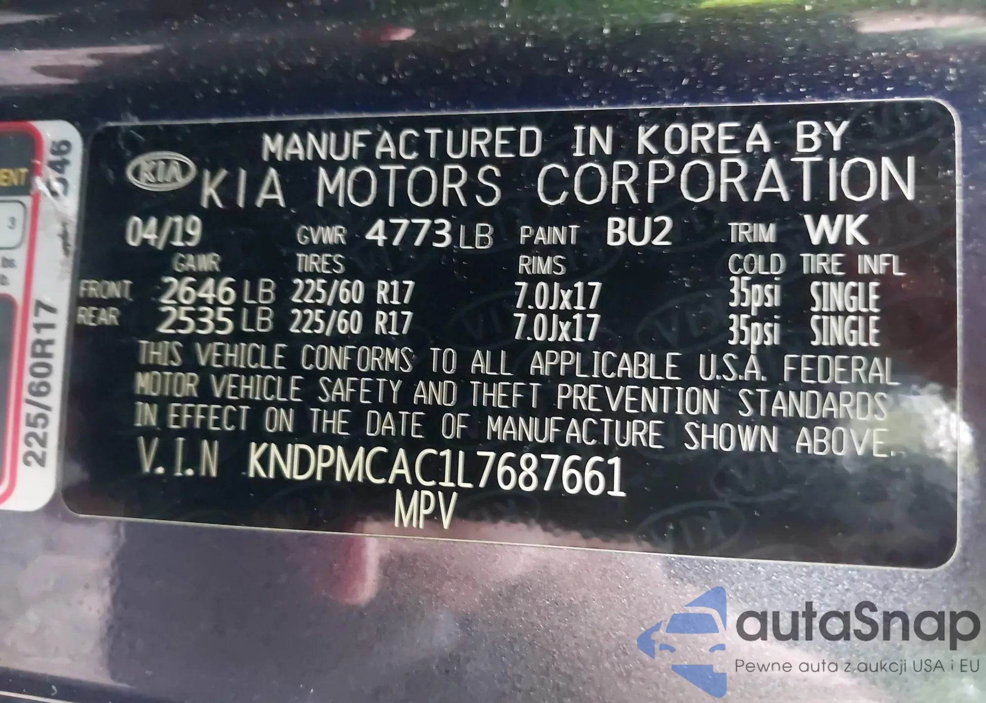 • VIN KNDPMCAC1L7687661