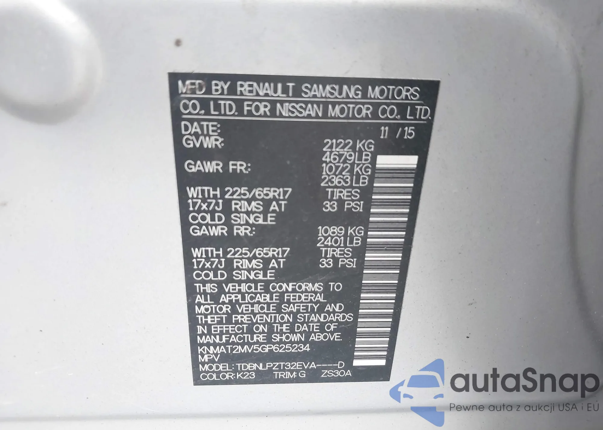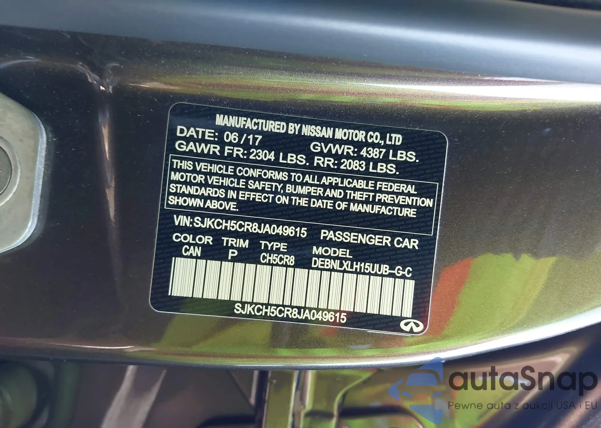 LOT: 43029537 VIN: SJKCH5CR8JA049615