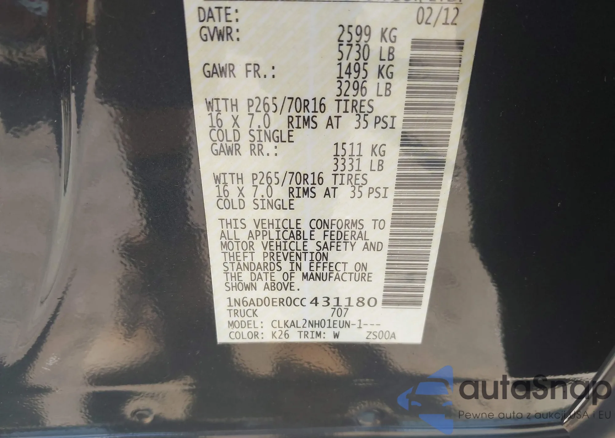 • VIN 1N6AD0ER0CC431180
