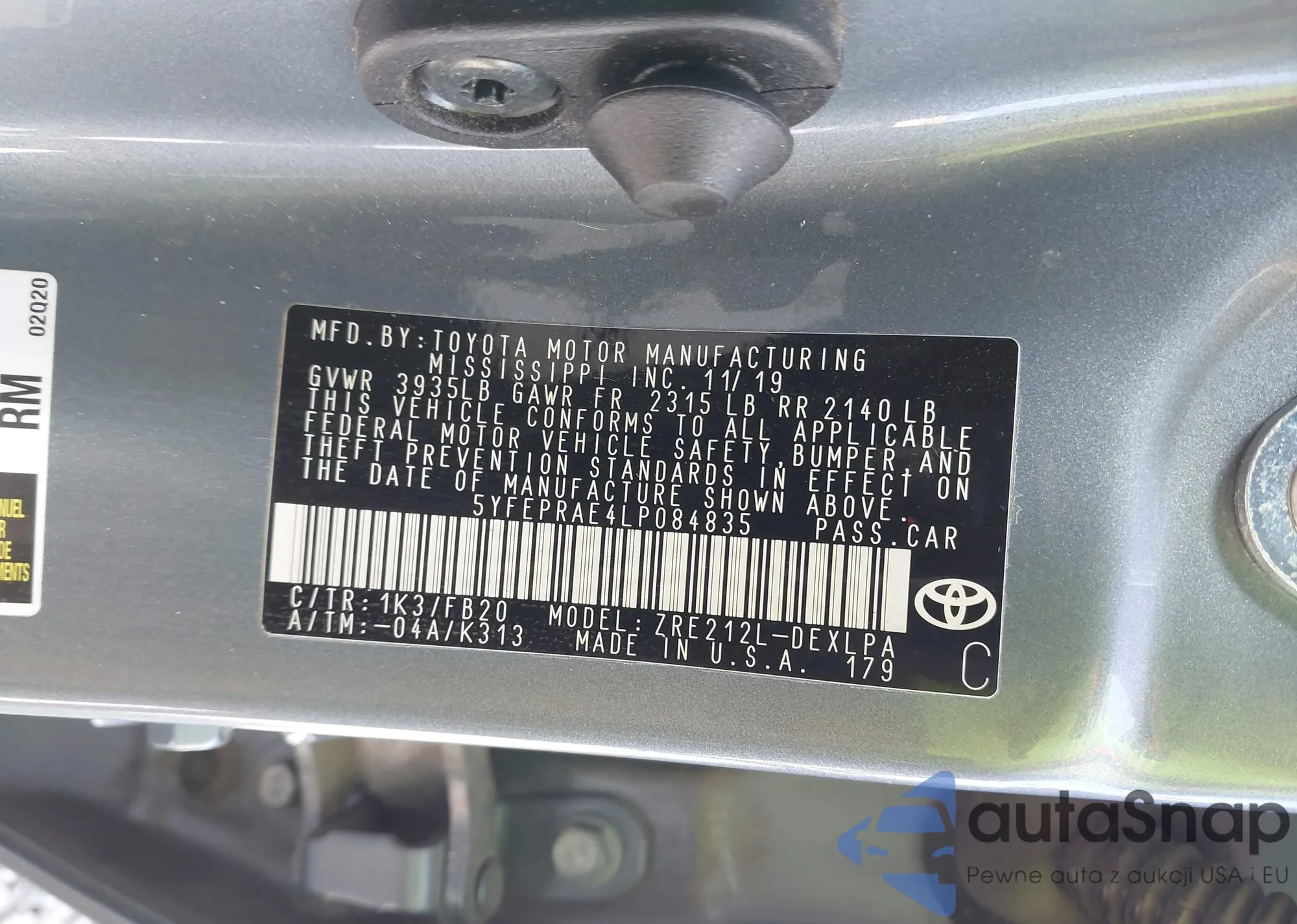 LOT: 43029308 VIN: 5YFEPRAE4LP084835