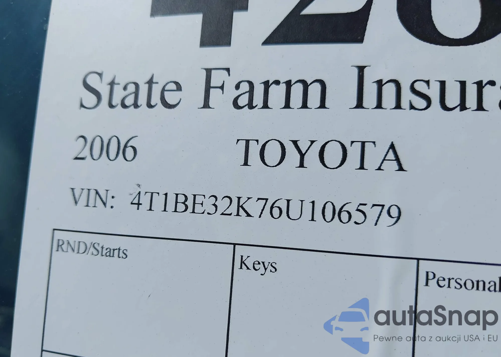 • VIN 4T1BE32K76U106579