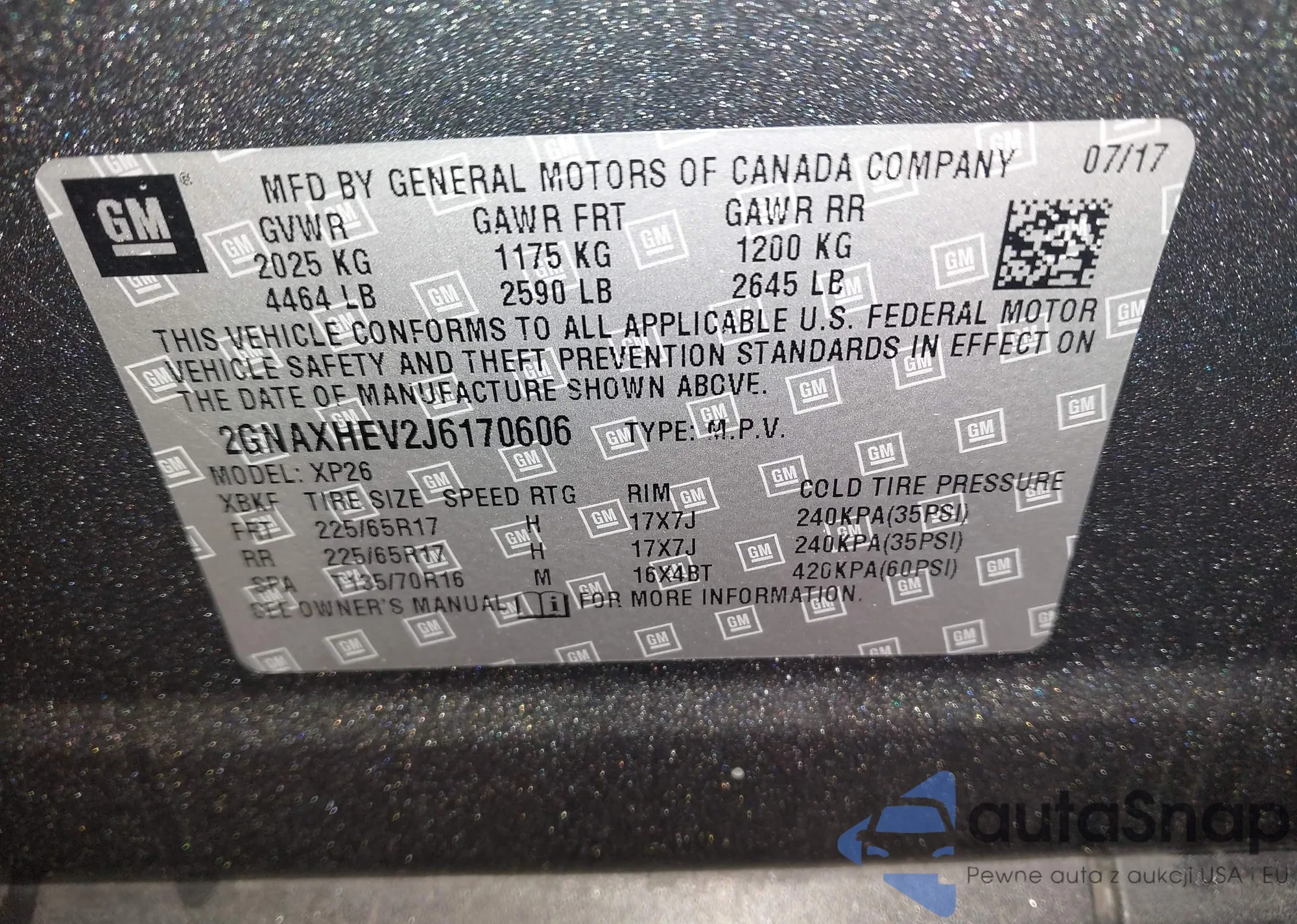 • VIN 2GNAXHEV2J6170606