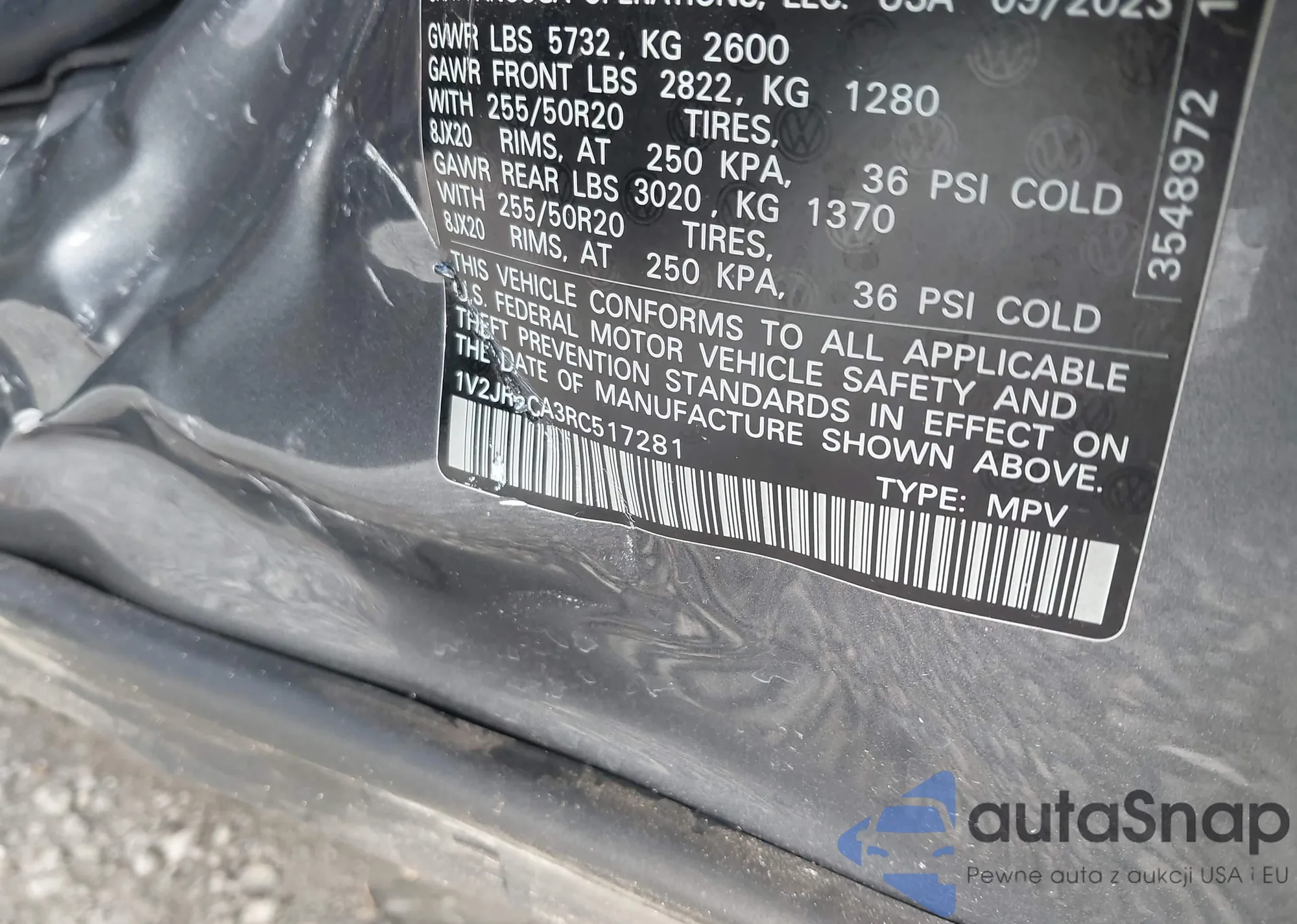 LOT: 42740453 VIN: 1V2HR2CA0MC568731