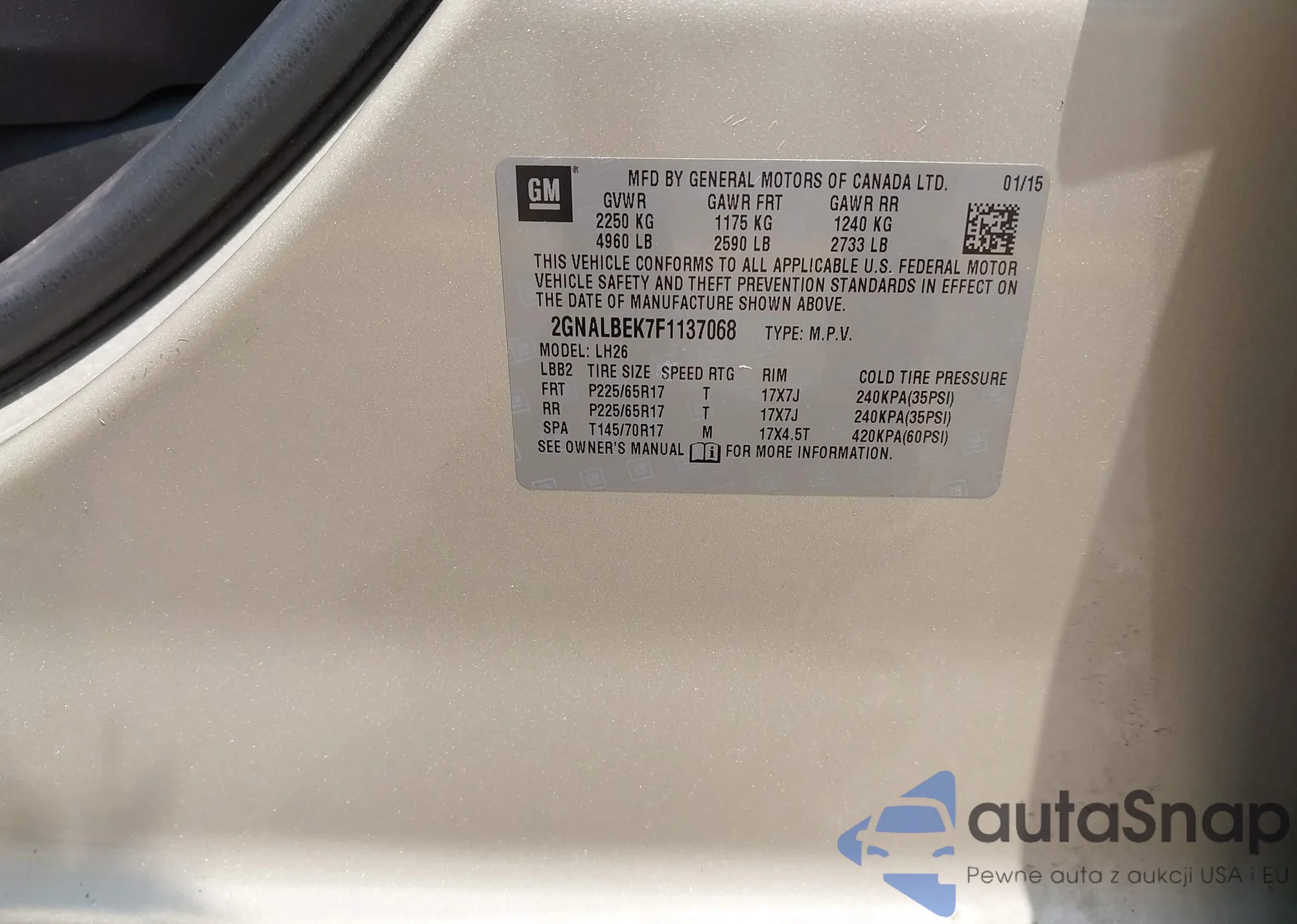 • VIN 2GNALBEK7F1137068