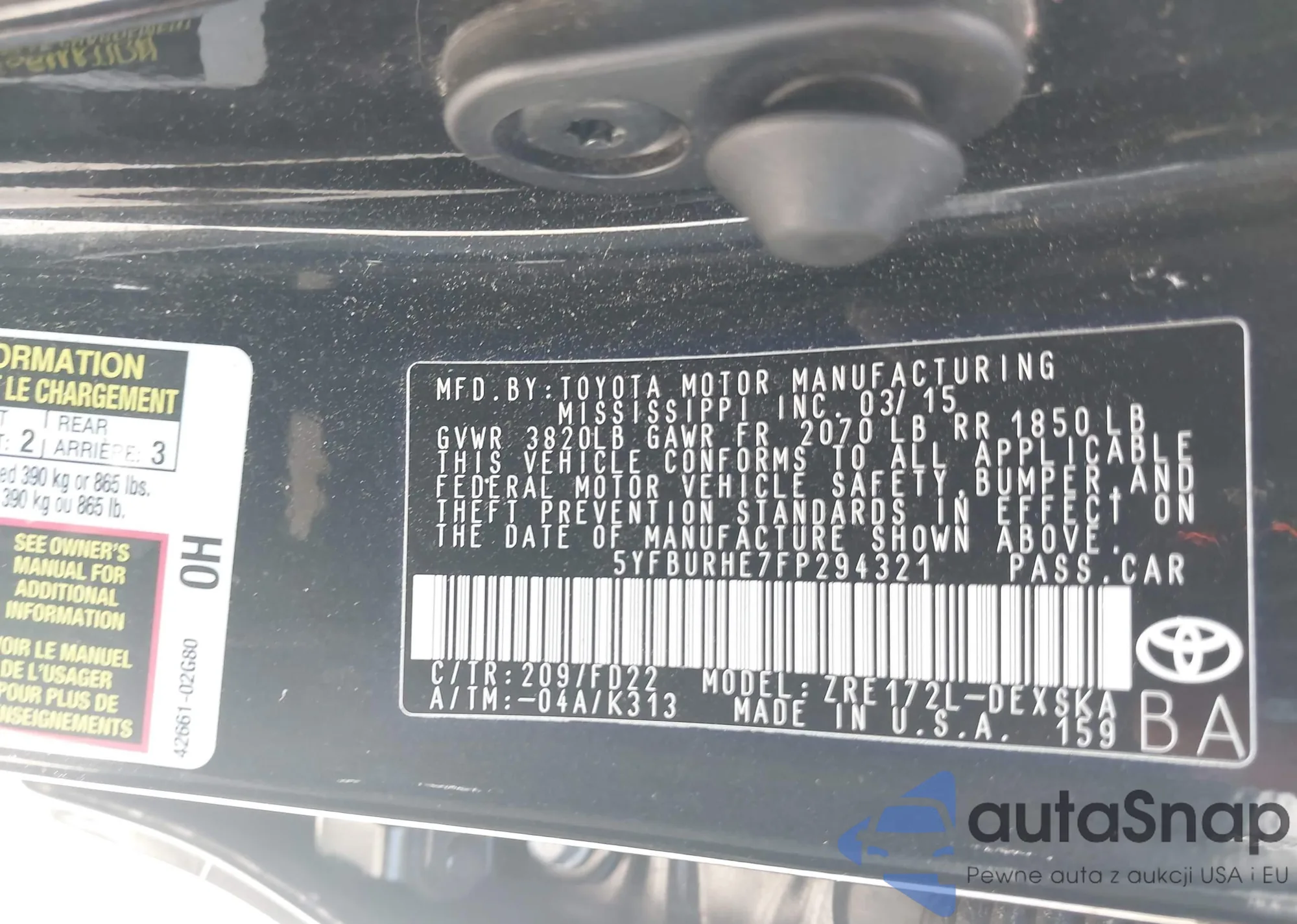 • VIN 5YFBURHE7FP294321