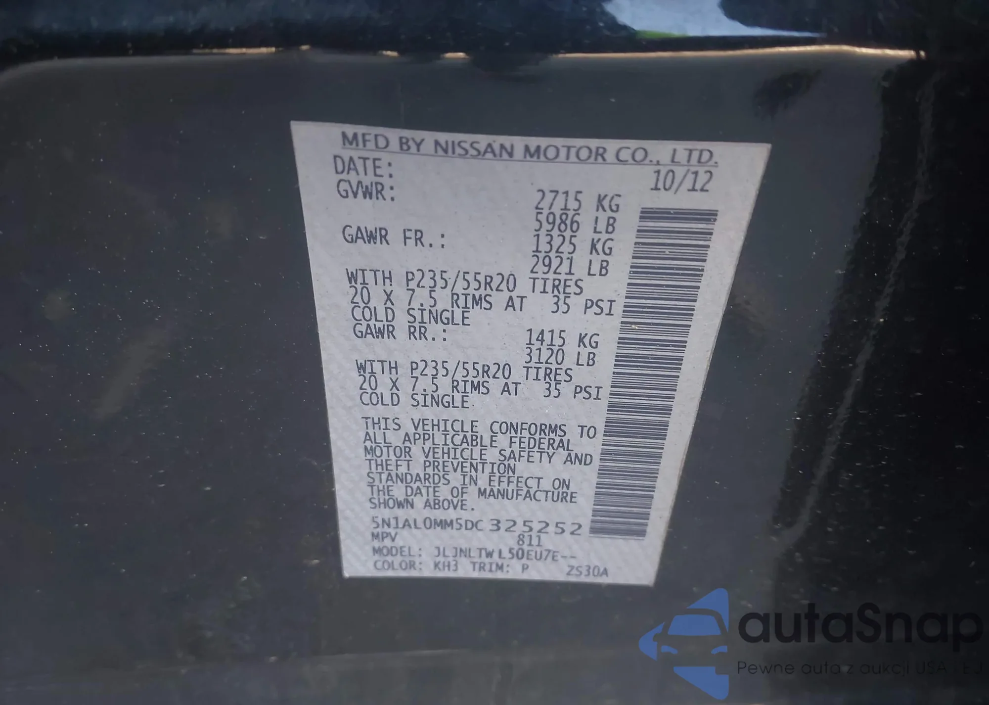 • VIN 5N1AL0MM5DC325252