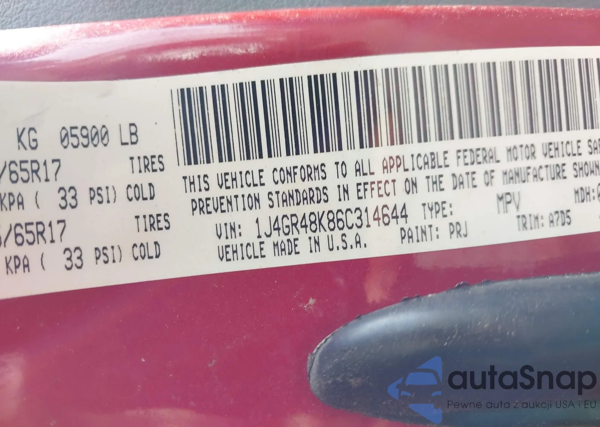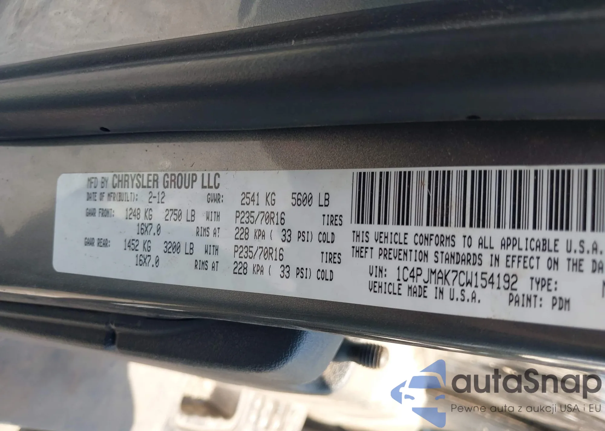 • VIN 1C4PJMAK7CW154192