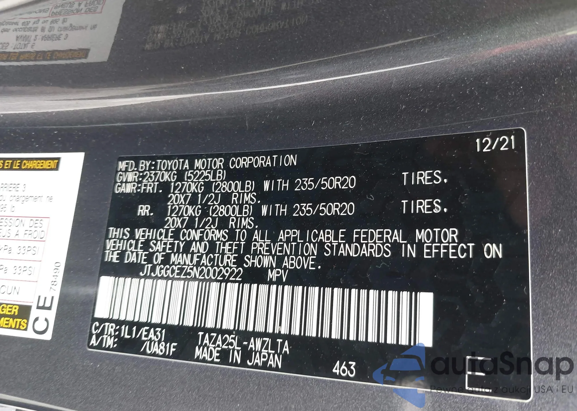 • VIN 3TMAZ5CN8NM170500