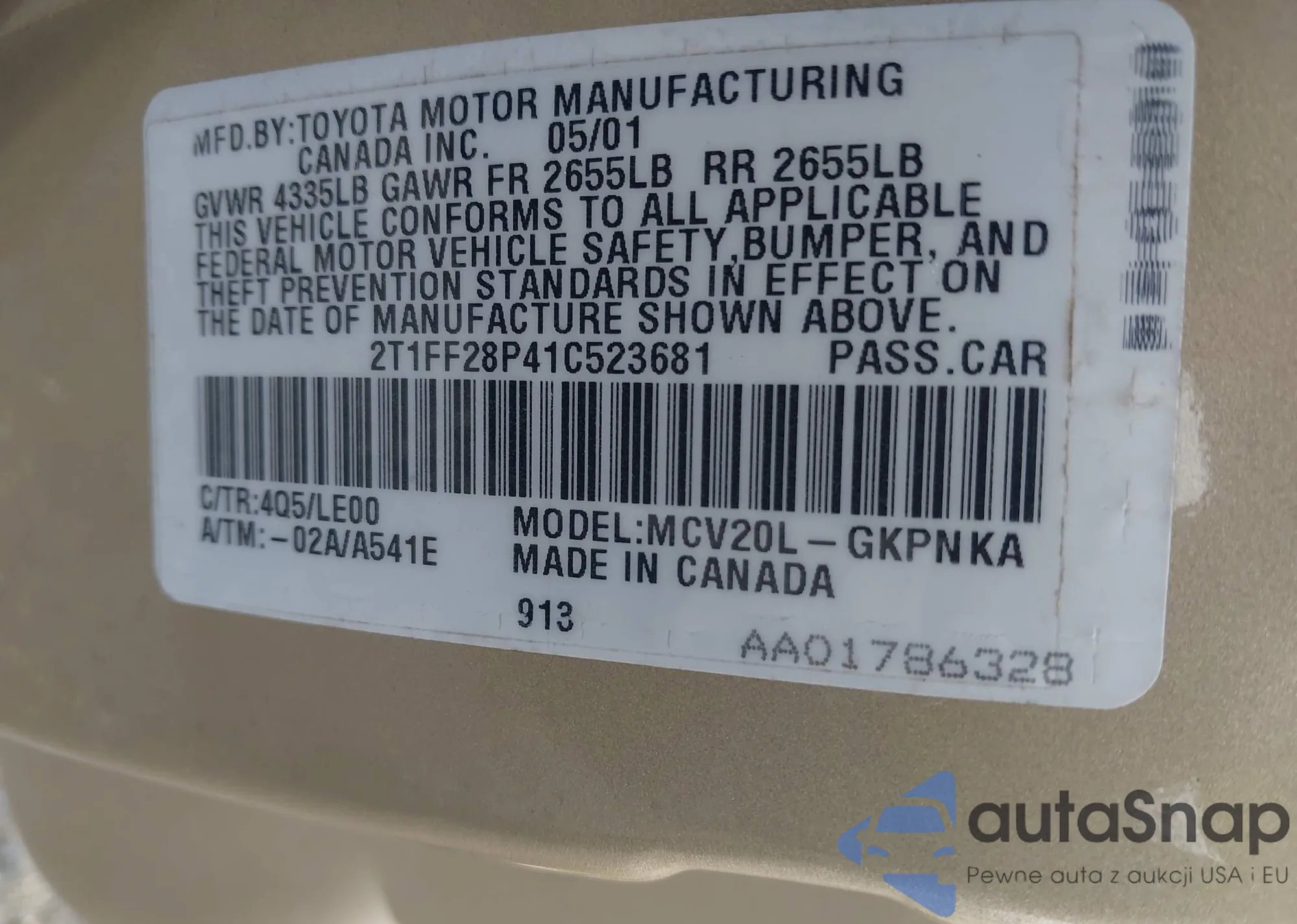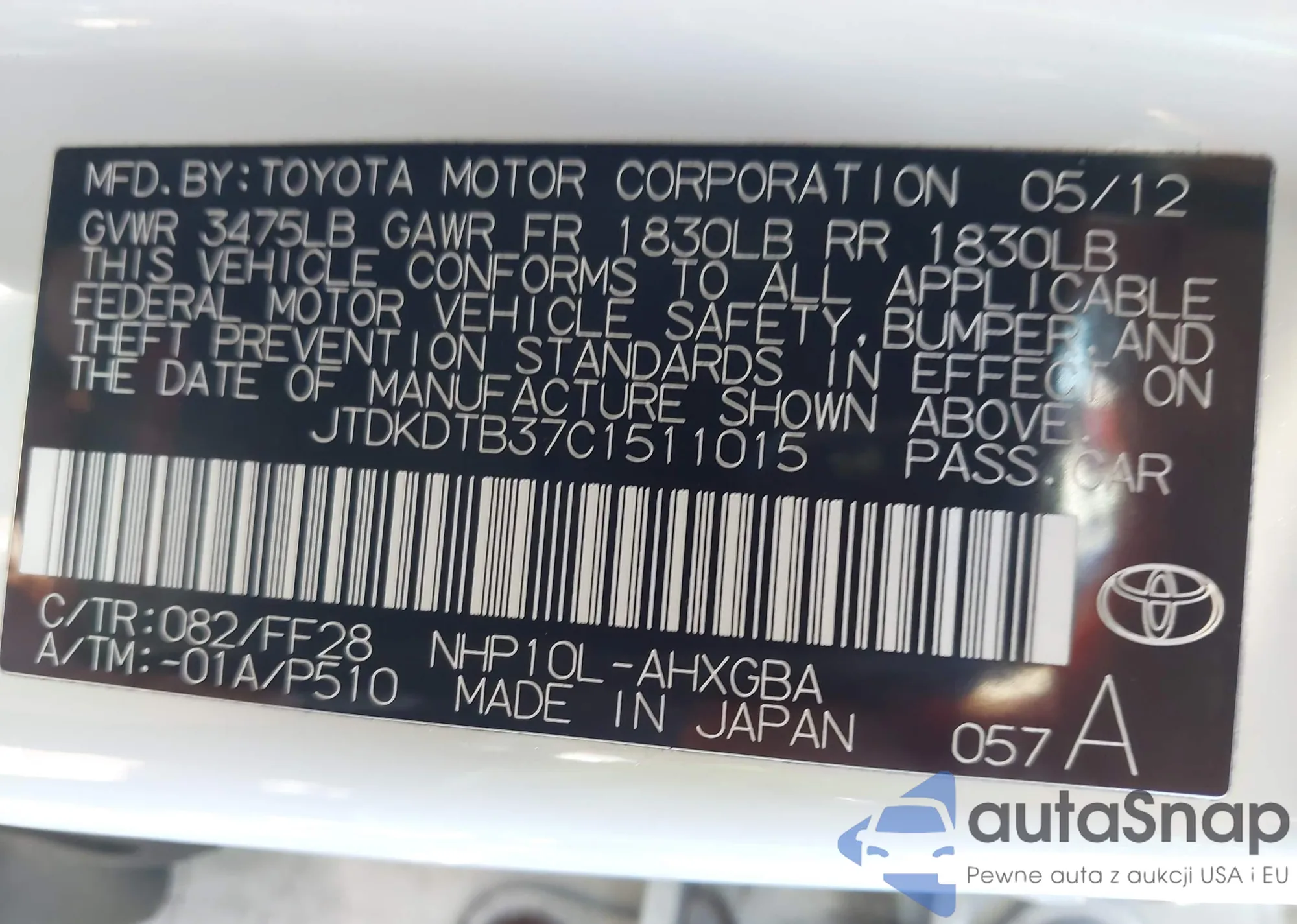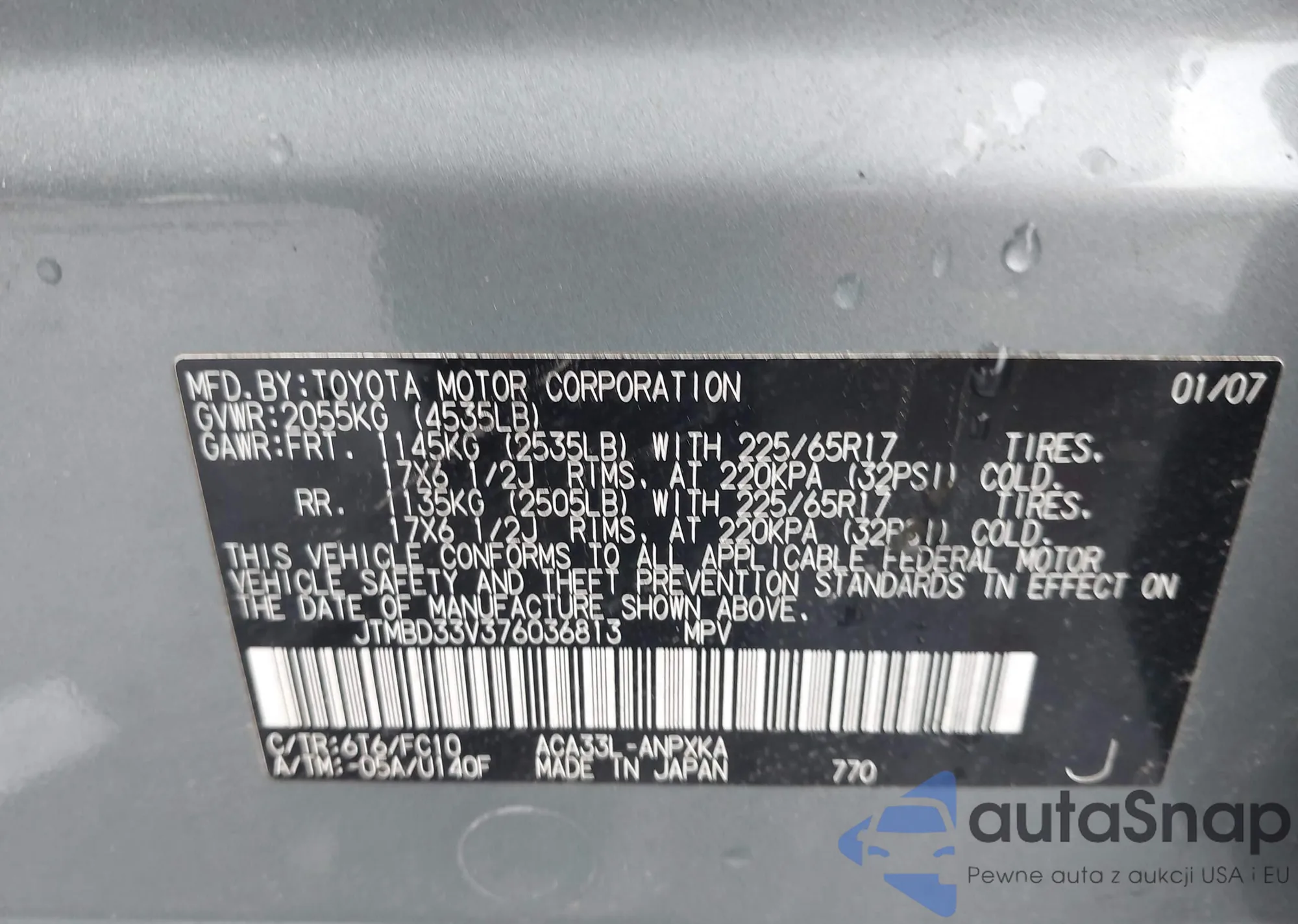 LOT: 43052695 VIN: JTMBD33V376036813