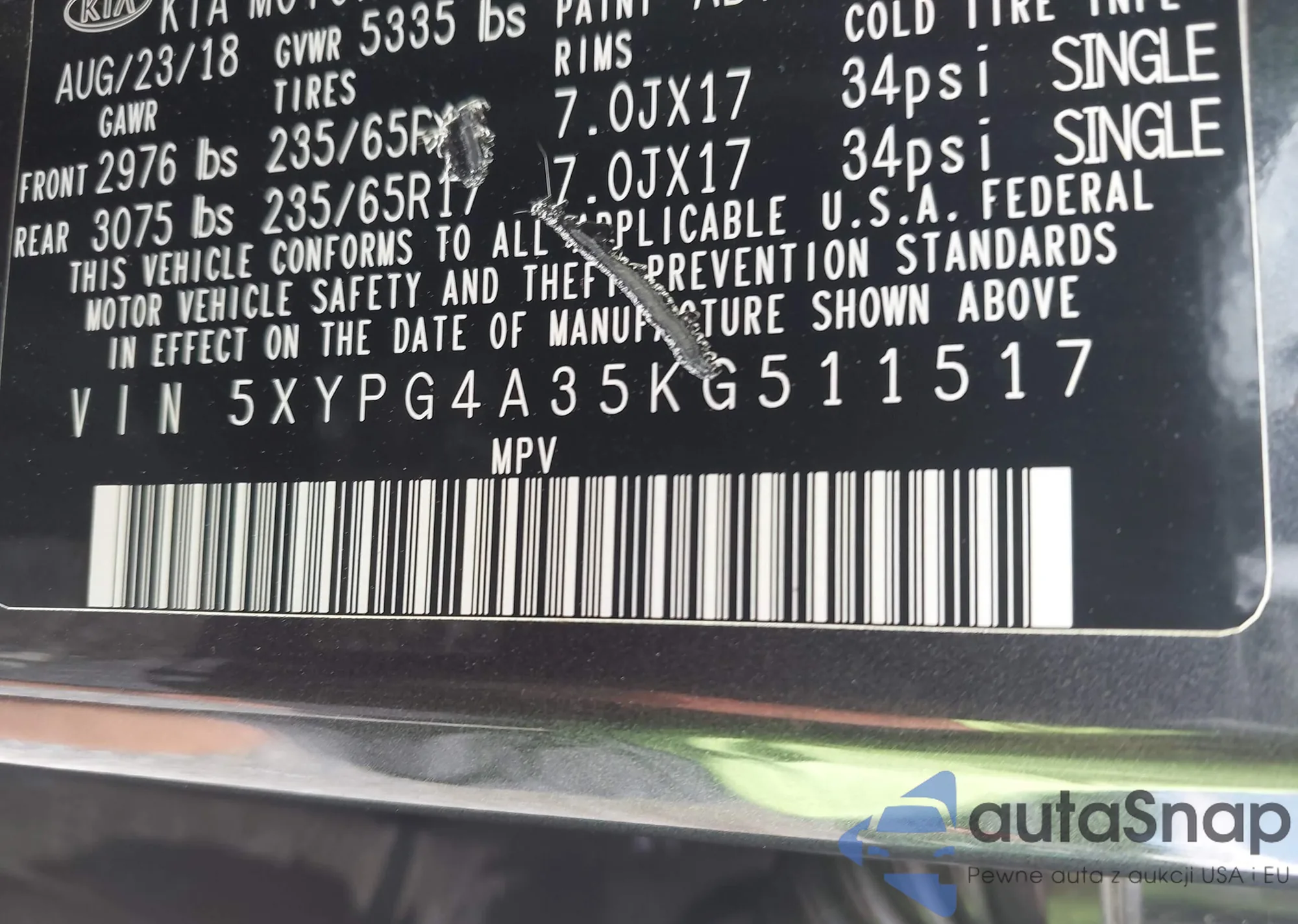 LOT: 42592859 VIN: 5FNYF8H00KB030141