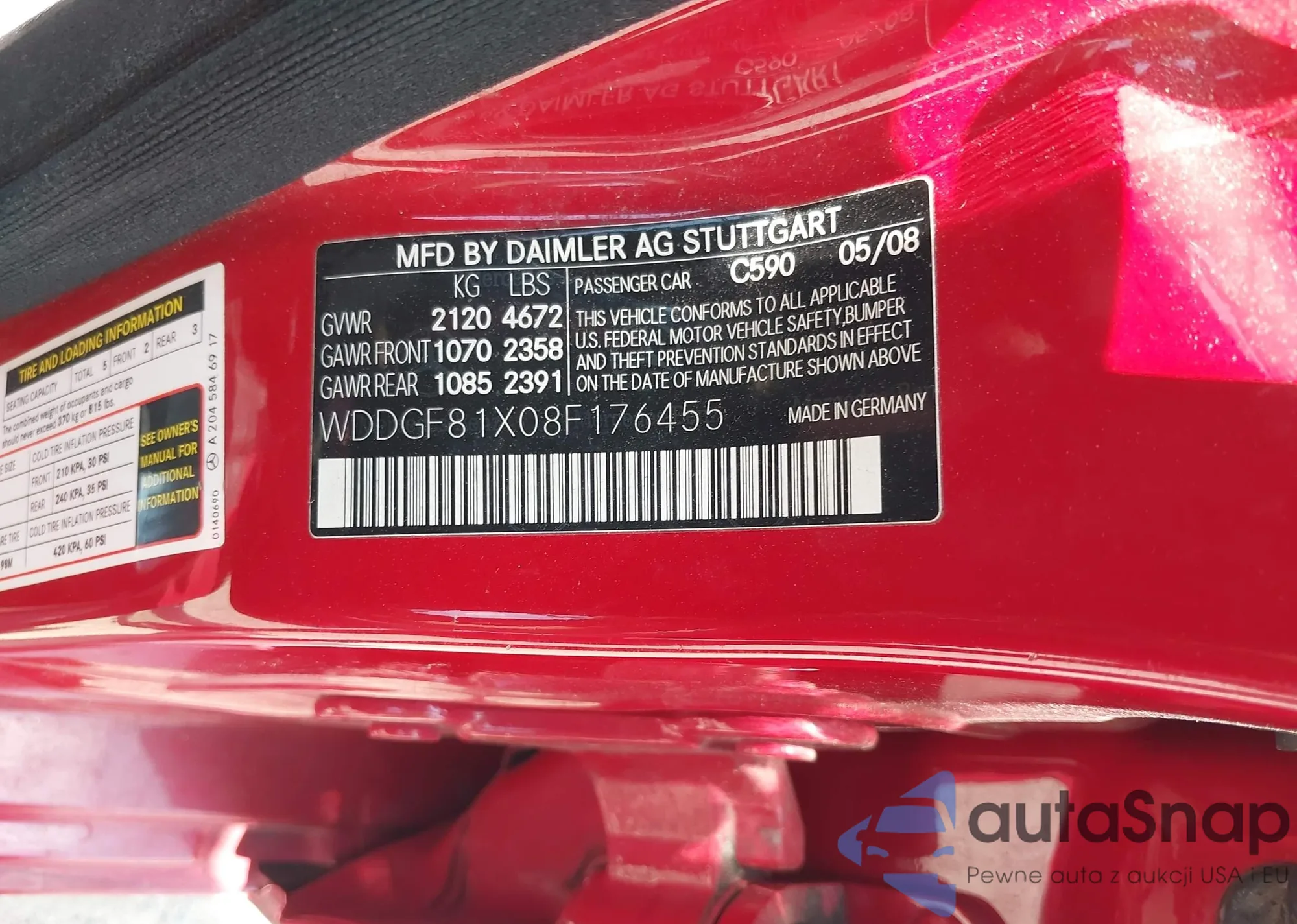 LOT: 42536817 VIN: WDDGF81X08F176455