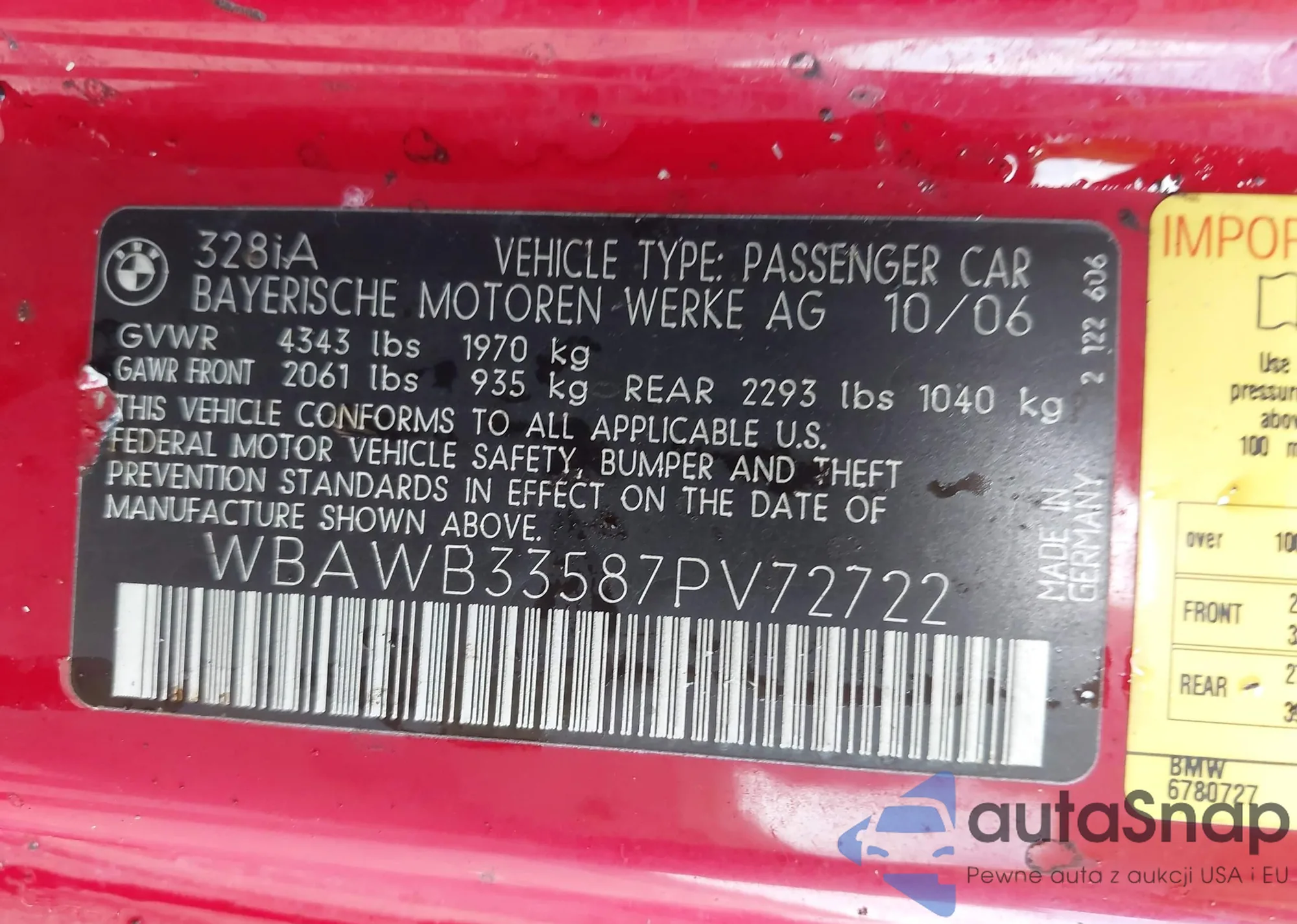 • VIN WBAWB33587PV72722