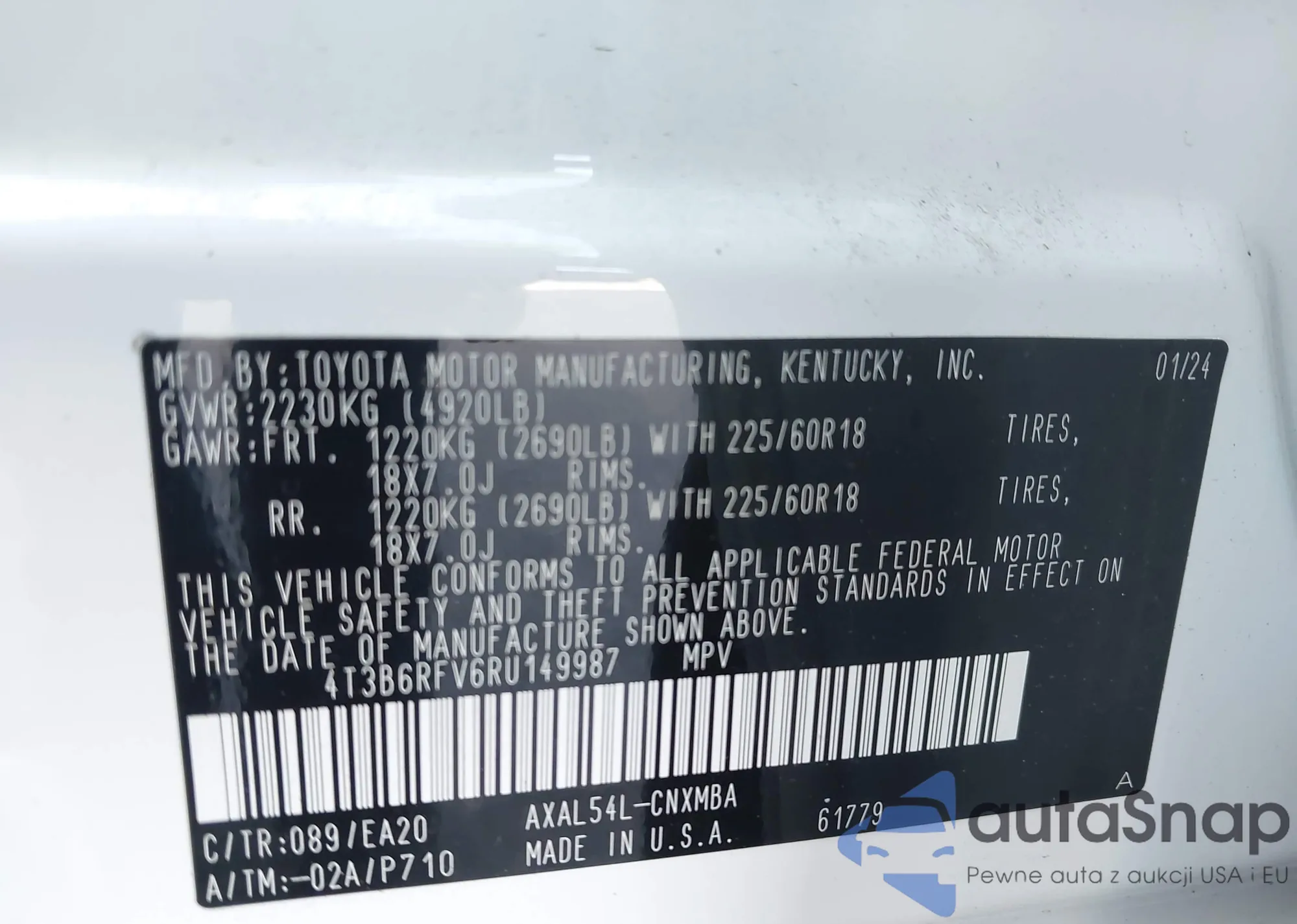 • VIN 4T3B6RFV6RU149987