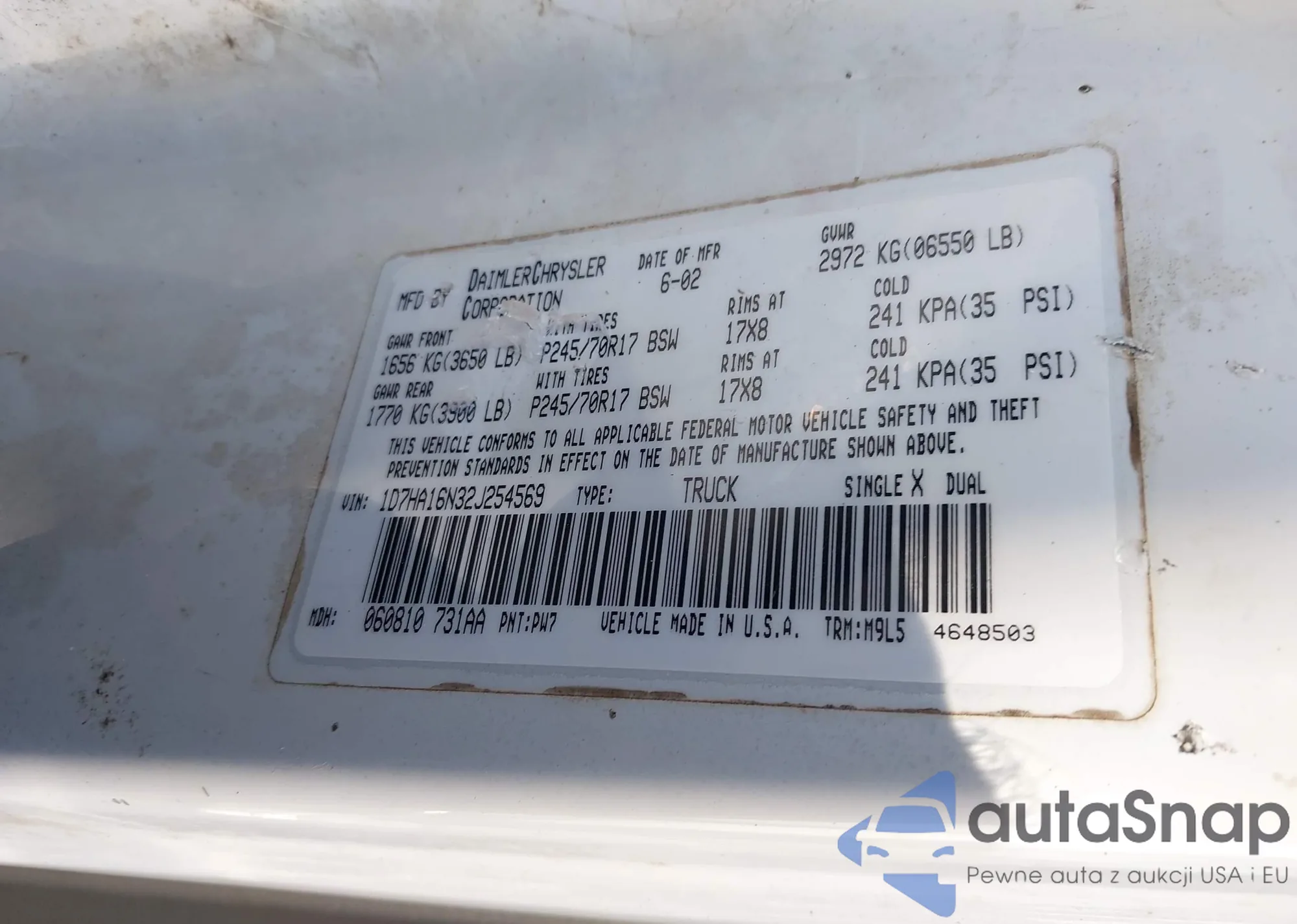 LOT: 42876486 VIN: 1D7HA16N32J254569