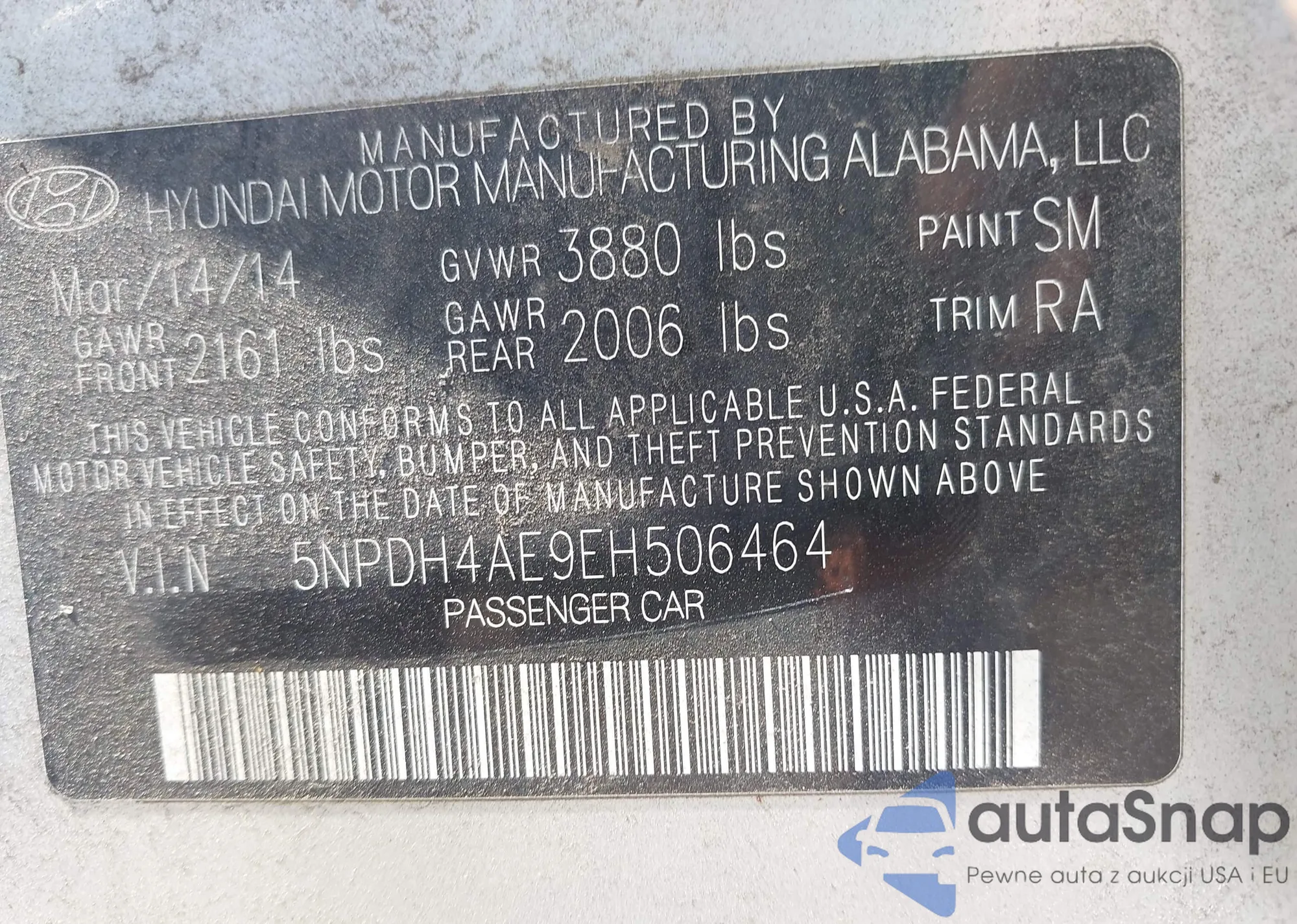 LOT: 42876728 VIN: YS3FH41U071010200