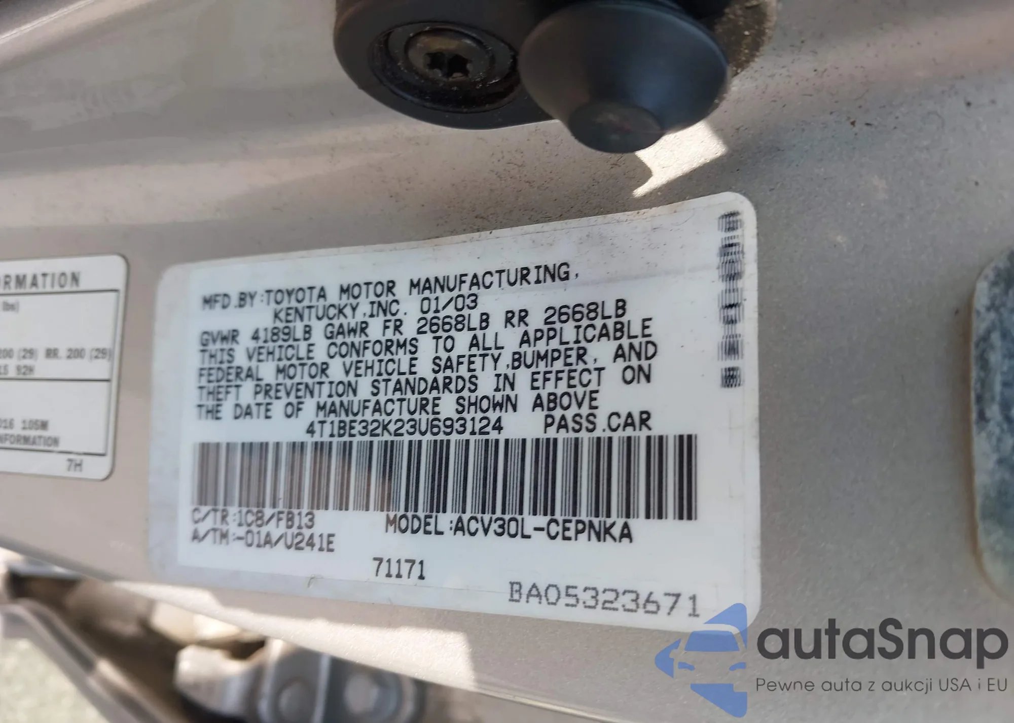 • VIN 4T1BE32K23U693124