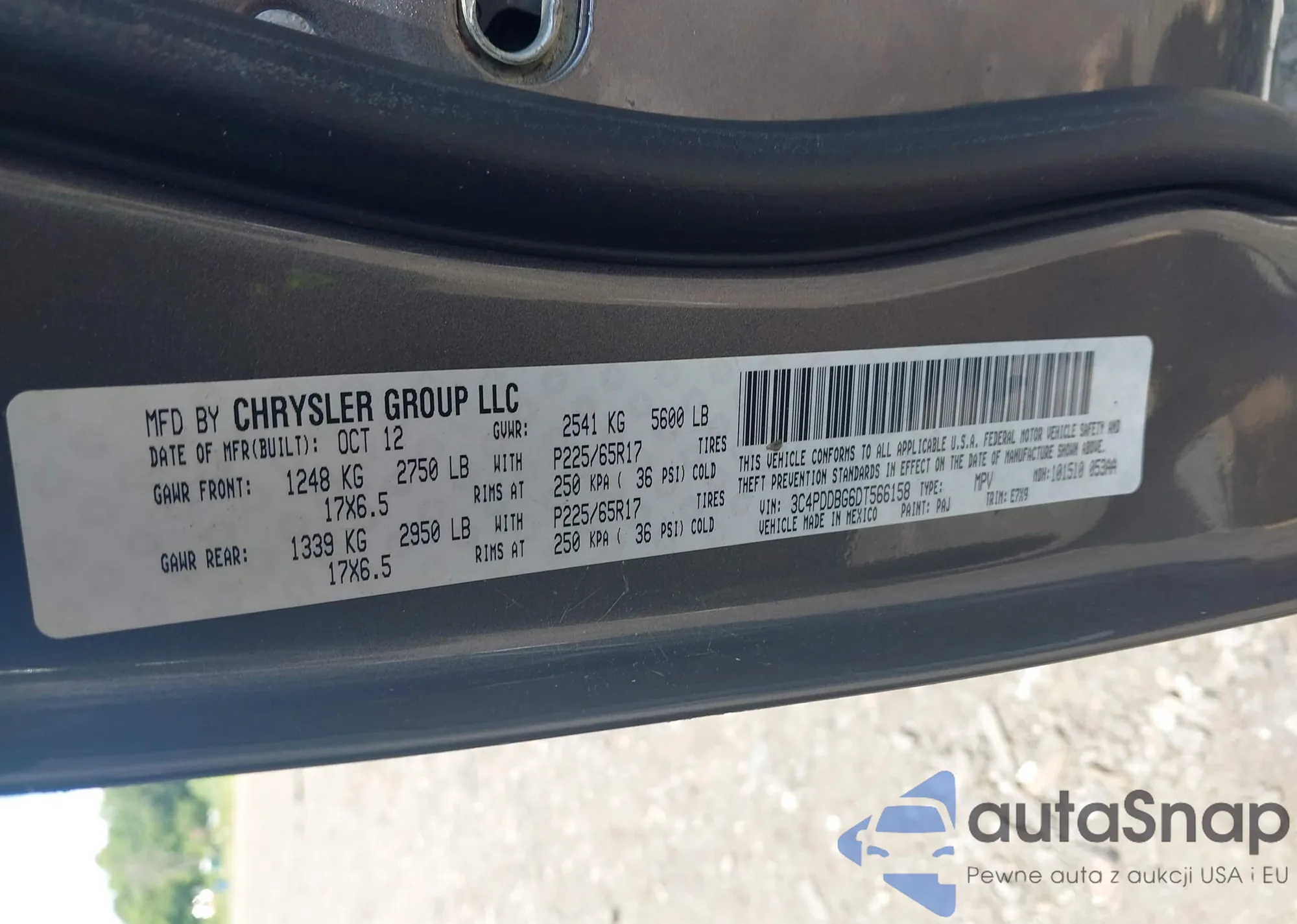 • VIN 3C4PDDBG6DT566158