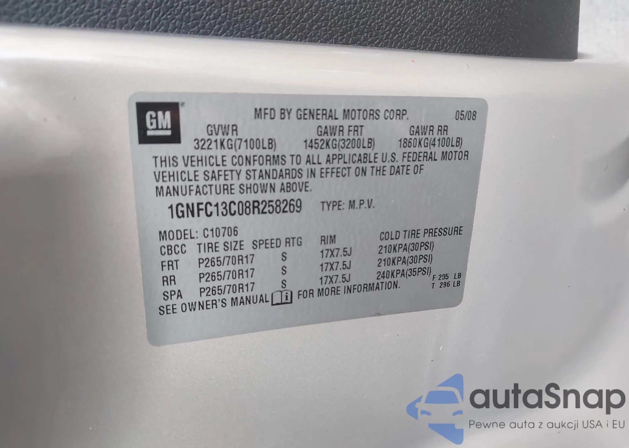 • VIN 1GNFC13C08R258269