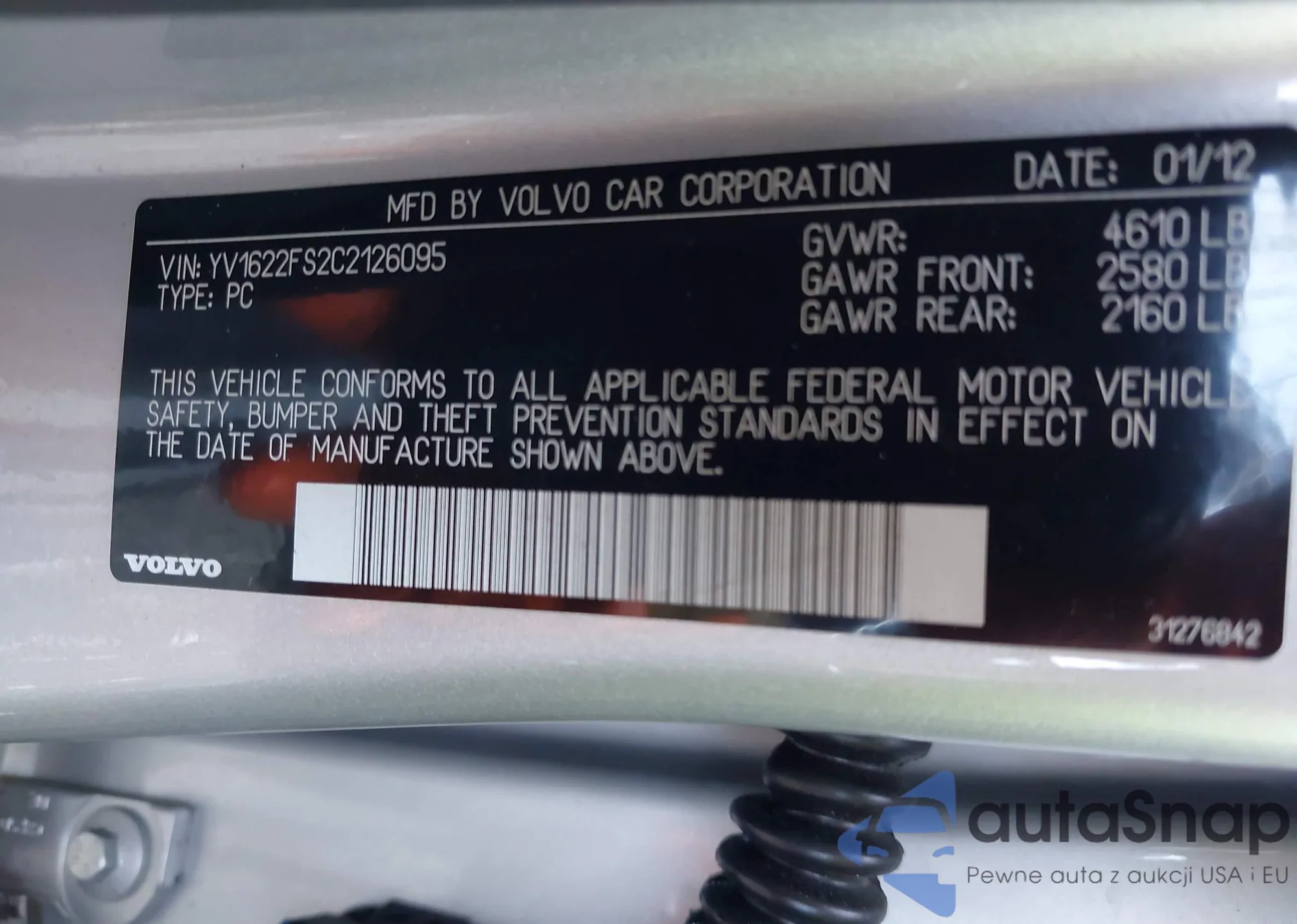 LOT: 42975914 VIN: YV1622FS2C2126095